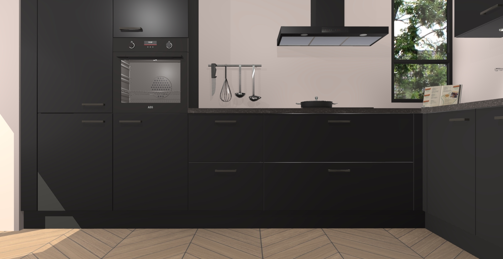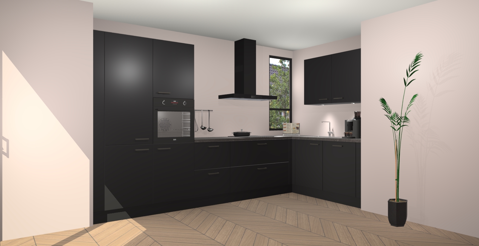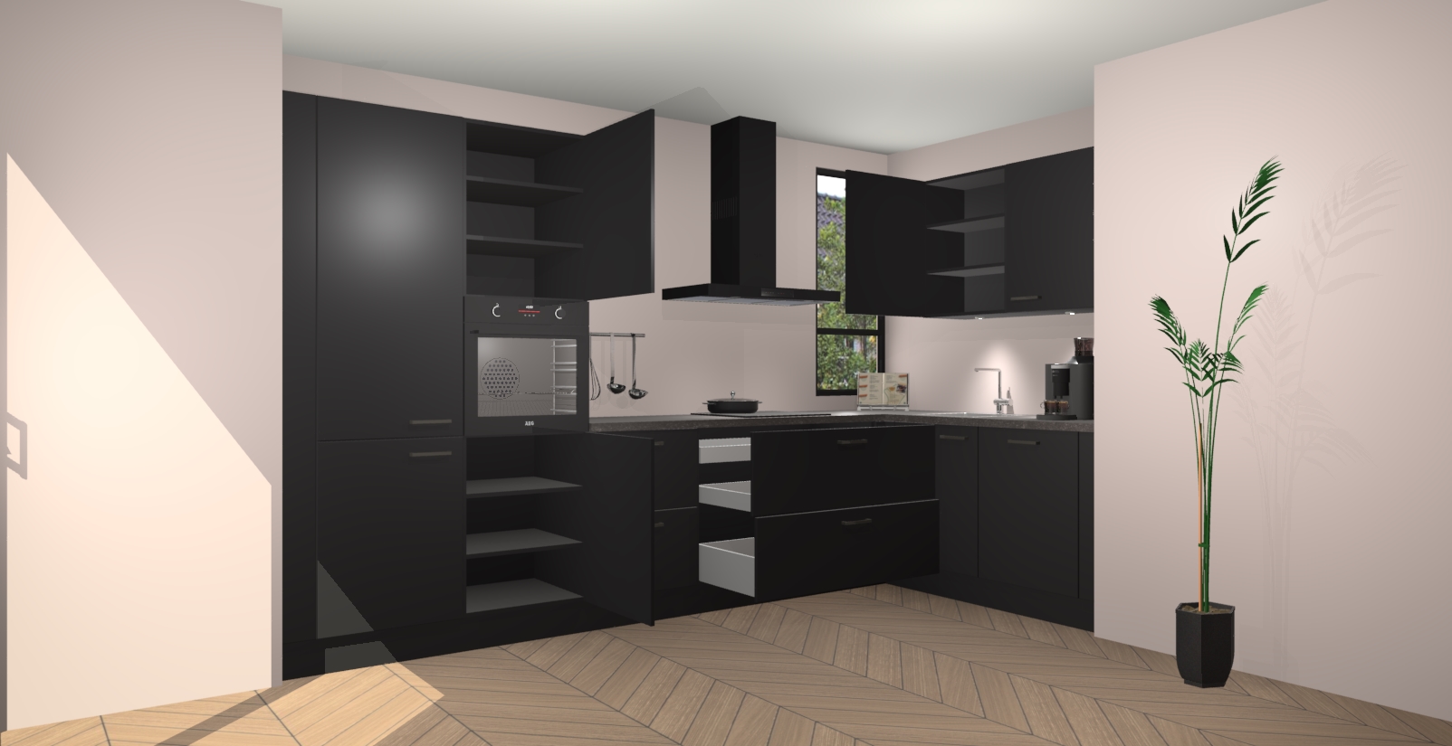 Welkom in uw nieuwe moderne keuken! Laat ons u voorstellen aan de Zwarte keuken Vlaanderen . Deze prachtige hoekkeuken straalt exclusiviteit en luxe uit als geen ander. Het strakke design, de tijdloze kleuren en het model maken van deze keuken een moderne klassieker. En met voldoende opbergruimte heeft deze keuken echt voor ieder wat wils.