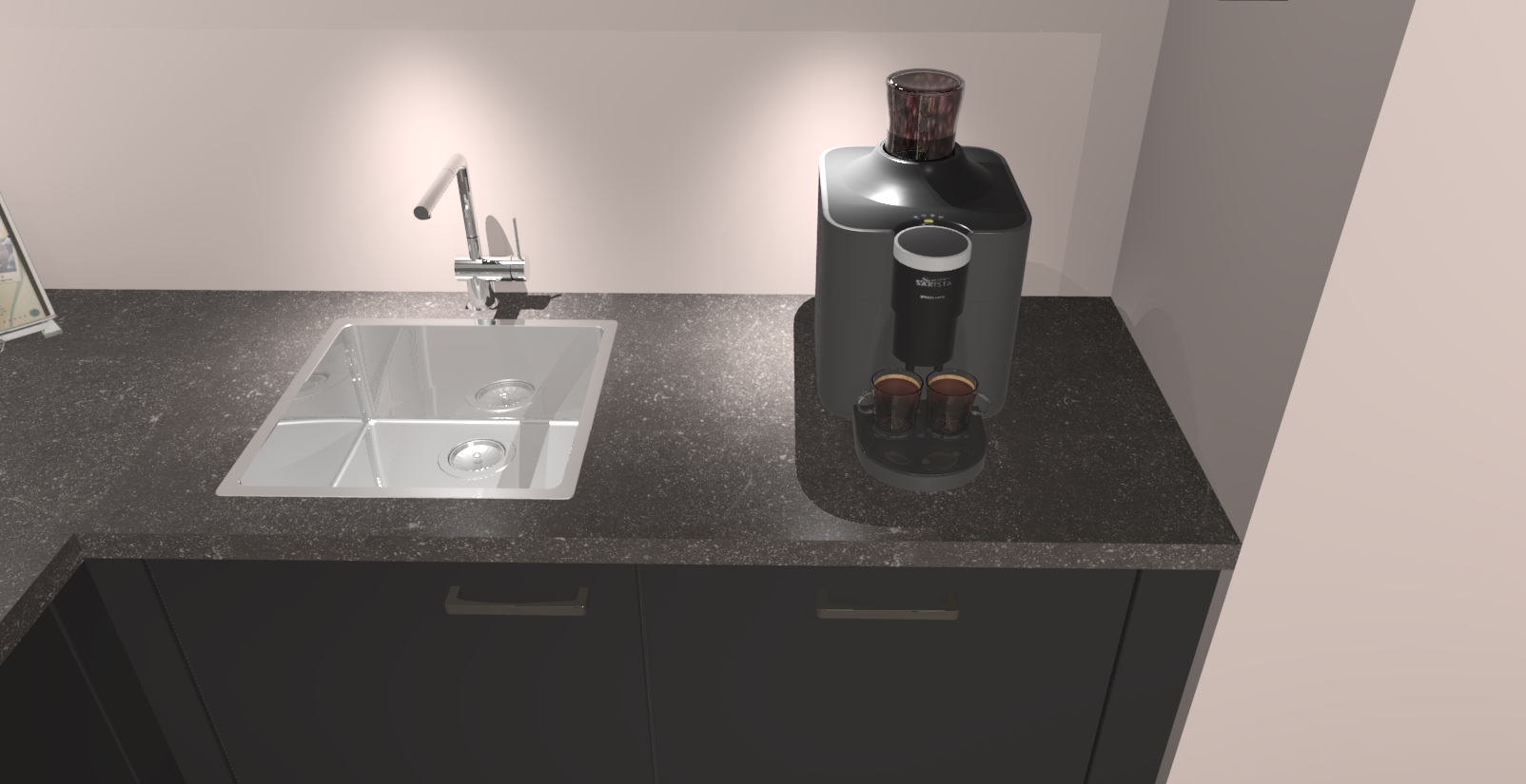 - De spoelbak is nog niet in gevreesd. Dit dient tijdens het werk gedaan te worden
