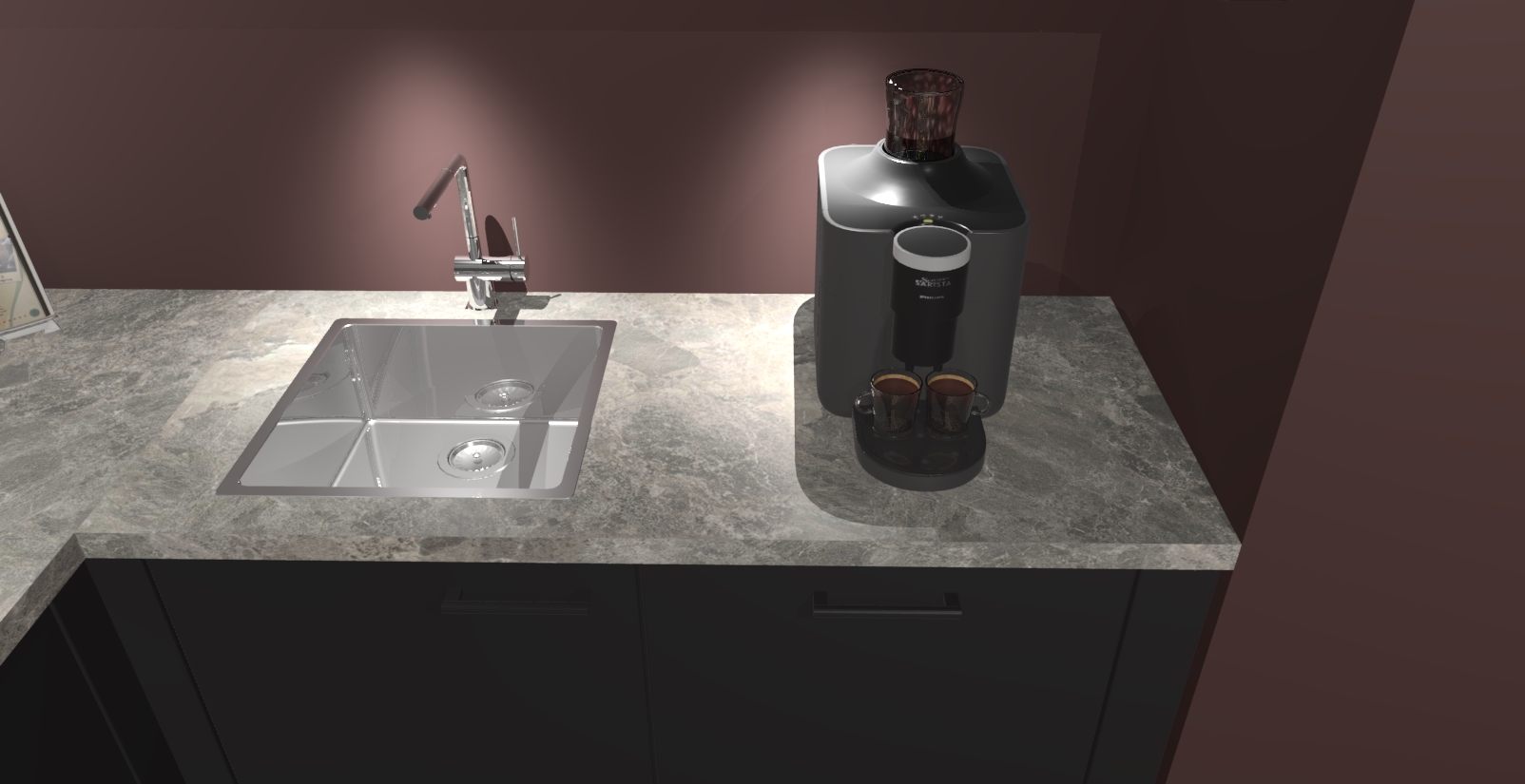 - De spoelbak is nog niet in gevreesd. Dit dient tijdens het werk gedaan te worden