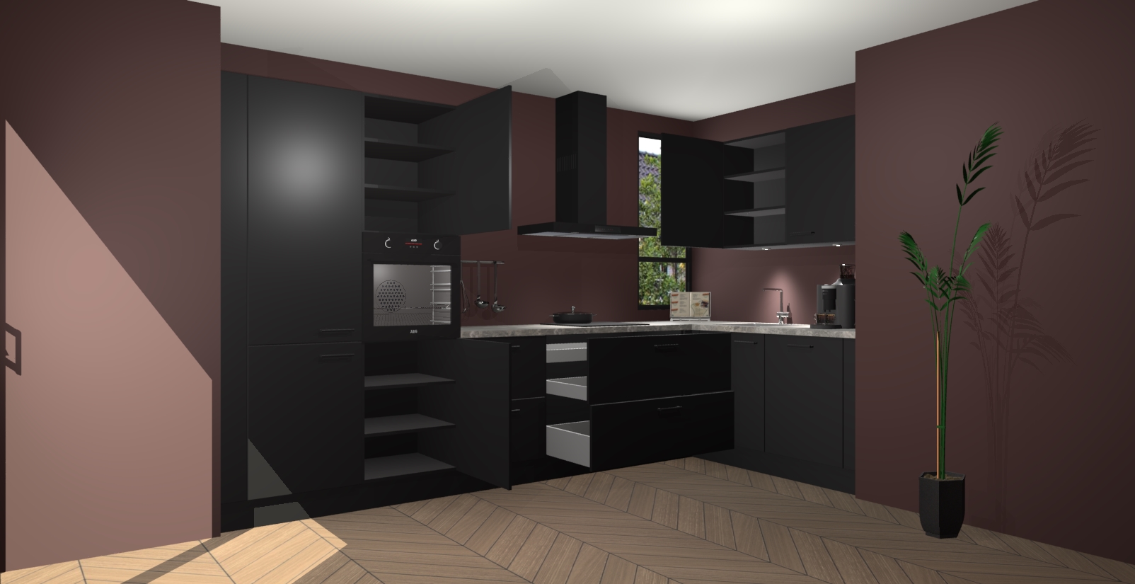 Welkom in uw nieuwe moderne keuken! Laat ons u voorstellen aan de Zwarte keuken Vlaanderen . Deze prachtige hoekkeuken straalt exclusiviteit en luxe uit als geen ander. Het strakke design, de tijdloze kleuren en het model maken van deze keuken een moderne klassieker. En met voldoende opbergruimte heeft deze keuken echt voor ieder wat wils.
