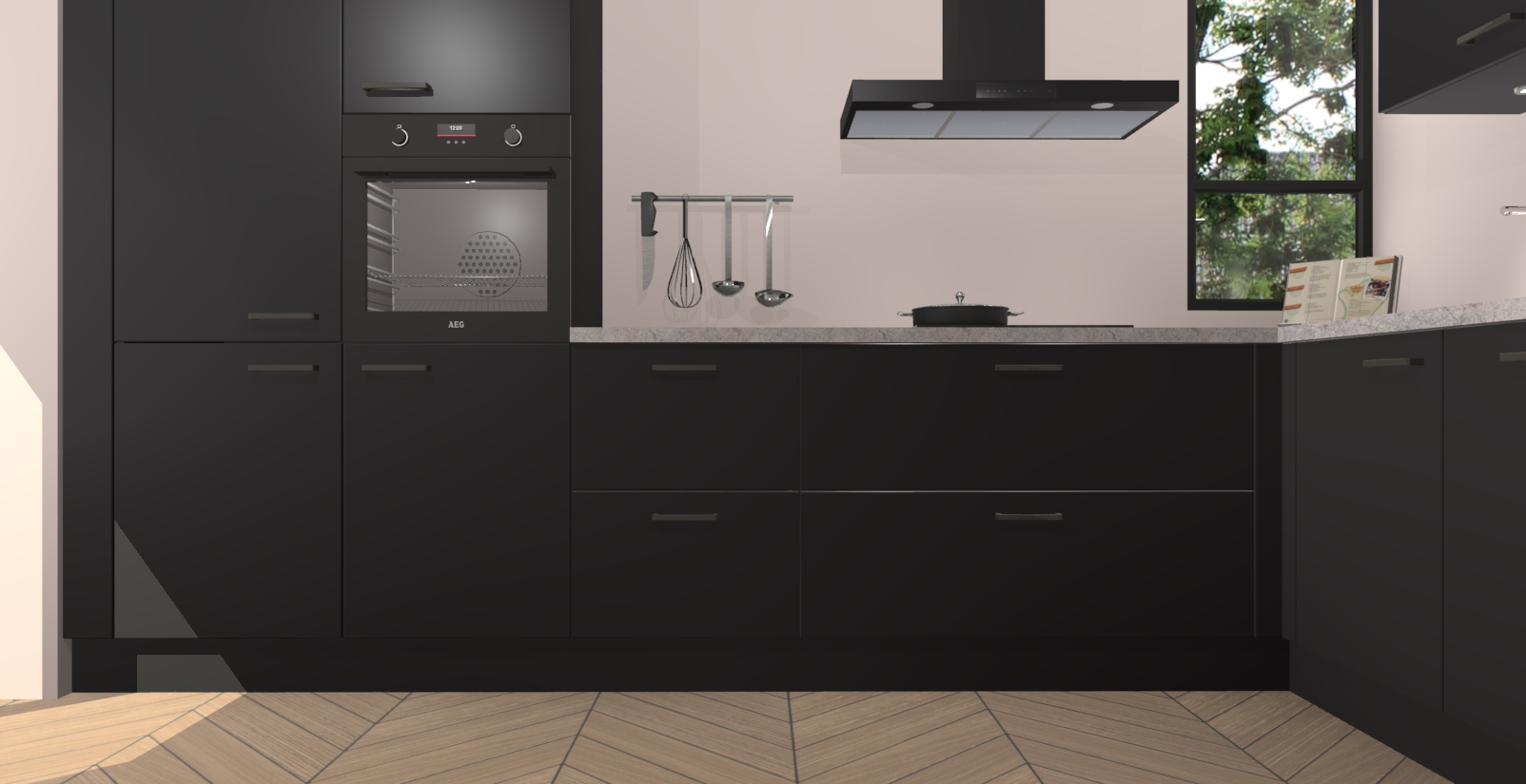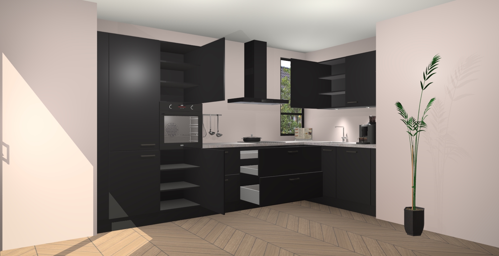 Welkom in uw nieuwe moderne keuken! Laat ons u voorstellen aan de Zwarte keuken Vlaanderen . Deze prachtige hoekkeuken straalt exclusiviteit en luxe uit als geen ander. Het strakke design, de tijdloze kleuren en het model maken van deze keuken een moderne klassieker. En met voldoende opbergruimte heeft deze keuken echt voor ieder wat wils.