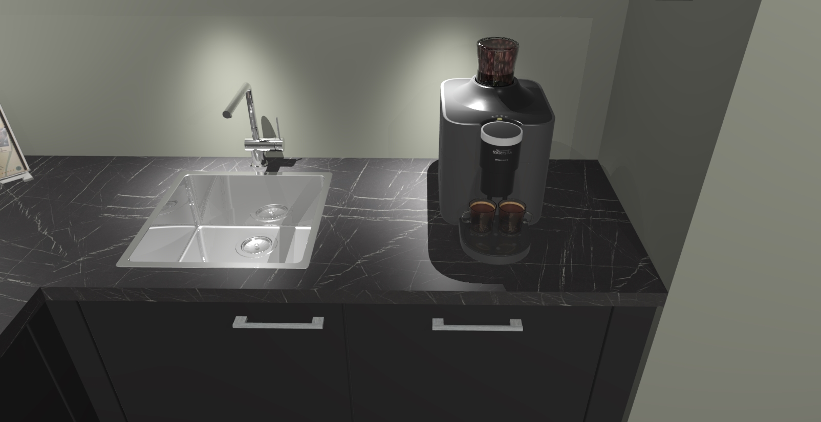 - De spoelbak is nog niet in gevreesd. Dit dient tijdens het werk gedaan te worden
