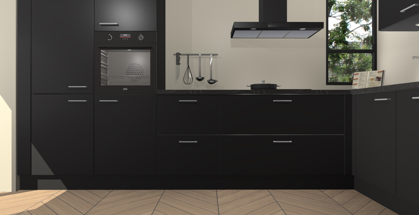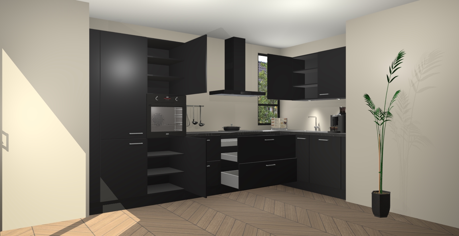 Welkom in uw nieuwe moderne keuken! Laat ons u voorstellen aan de Zwarte keuken Vlaanderen . Deze prachtige hoekkeuken straalt exclusiviteit en luxe uit als geen ander. Het strakke design, de tijdloze kleuren en het model maken van deze keuken een moderne klassieker. En met voldoende opbergruimte heeft deze keuken echt voor ieder wat wils.