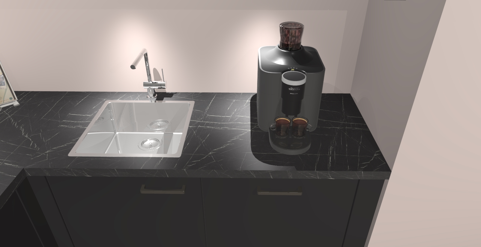• De spoelbak is nog niet in gevreesd. Dit dient tijdens het werk gedaan te worden