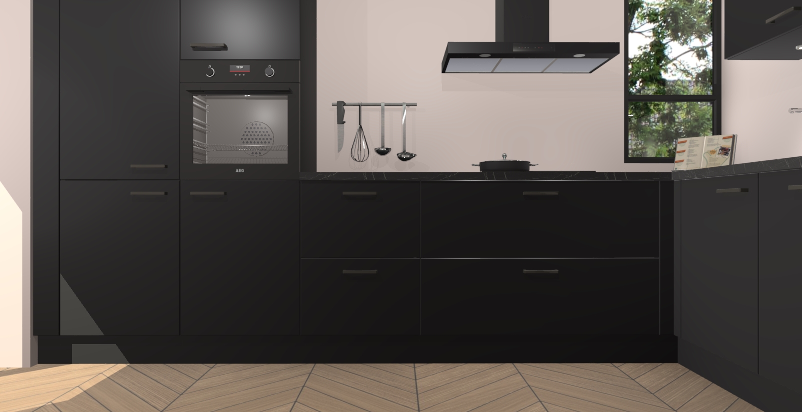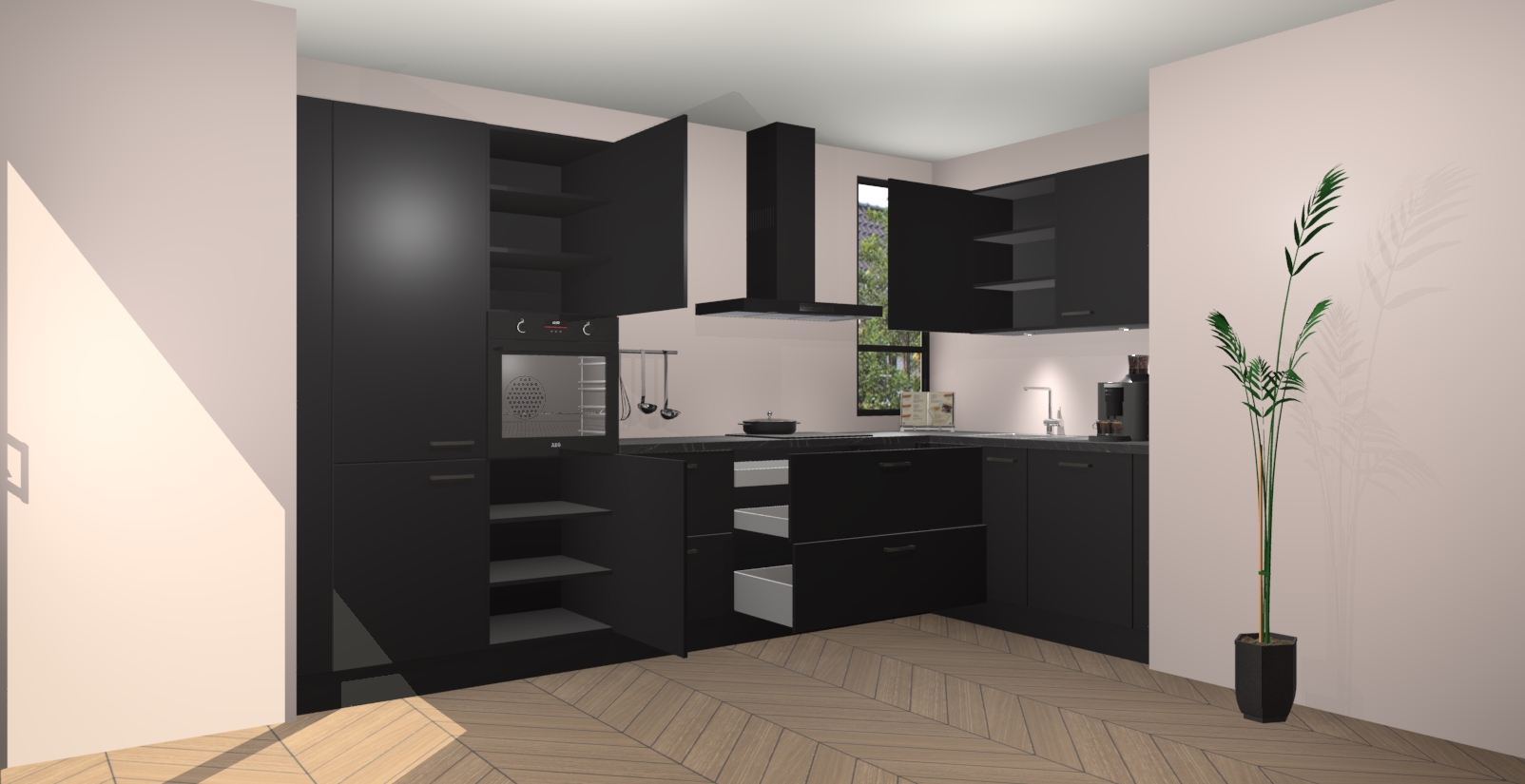 Welkom in uw nieuwe moderne keuken! Laat ons u voorstellen aan de Zwarte keuken Vlaanderen . Deze prachtige hoekkeuken straalt exclusiviteit en luxe uit als geen ander. Het strakke design, de tijdloze kleuren en het model maken van deze keuken een moderne klassieker. En met voldoende opbergruimte heeft deze keuken echt voor ieder wat wils.