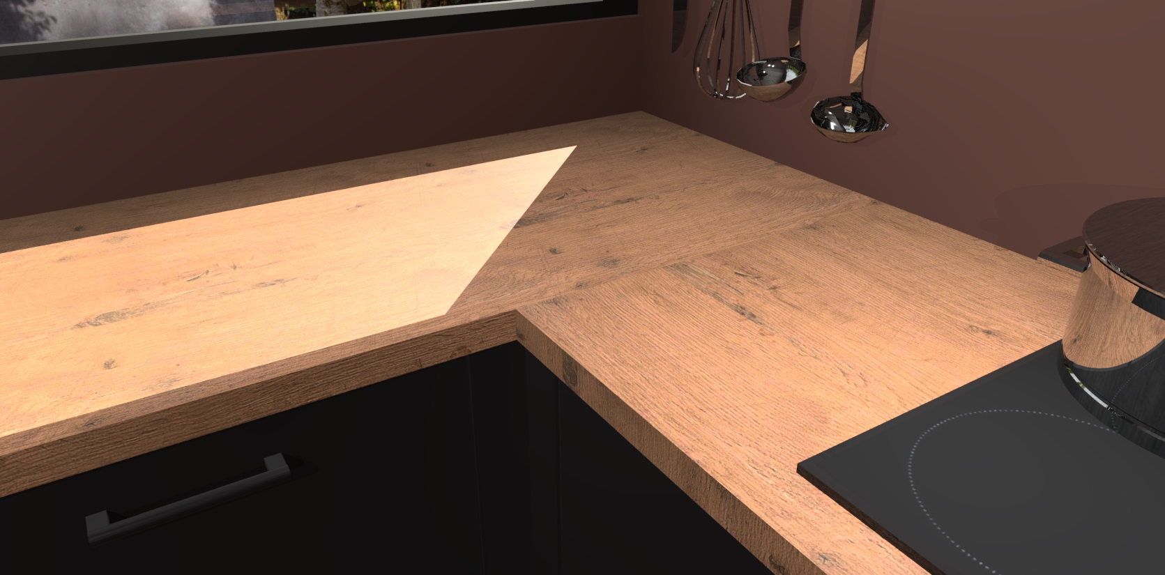 - Bij een hoekwerkblad zijn de hoeken in gevreesd en op maat gemaakt