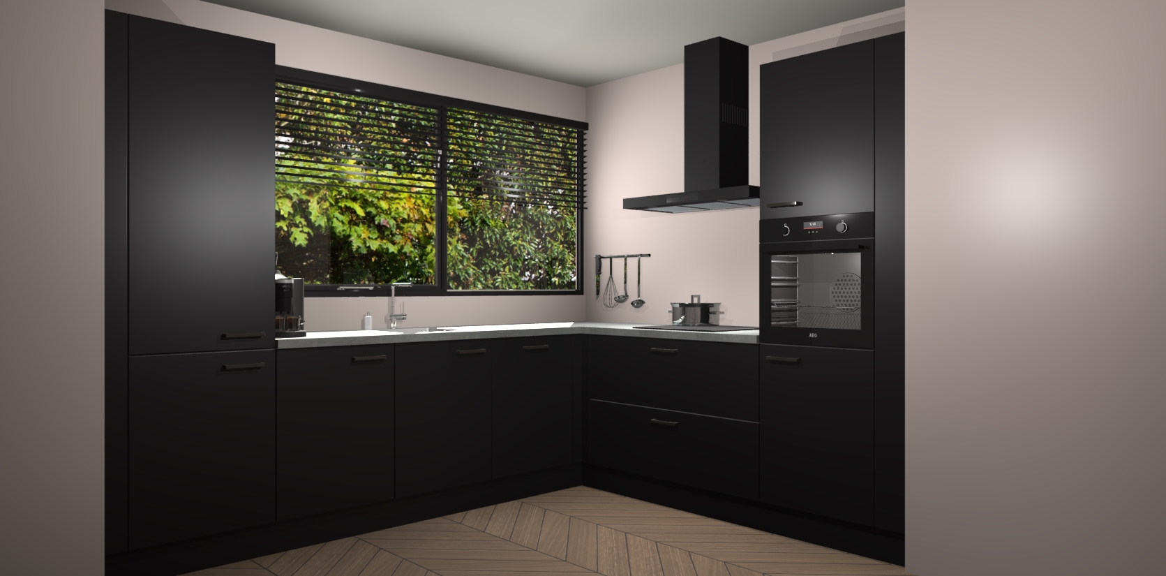 Met een modern, tijdloos design en ruime opslagruimte, zult u zich in no-time thuis voelen in uw nieuwe keuken. Uw leven wordt eenvoudiger met de soft-close deuren die voor het ultieme stille comfort zorgen - geen geluid dat u stoort terwijl u kookt. Ook is de keuken voorzien van 5 ingebouwde apparaten: een oven, inductie kookplaat, afzuigkap, vaatwasser en koelkast. Deze kunnen gemakkelijk na bestelling worden bijgewerkt naar AEG - waardoor uw luxe ervaring compleet is.