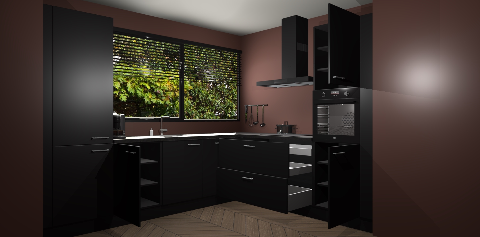 Wij presenteren de revolutie in keukens: de zwarte keuken Vogar. Met modern design, een tijdloos uiterlijk en kasten die al voor gemonteerd worden geleverd, laat deze stijlvolle keuken uw kookervaring op een hele nieuwe manier transformeren.