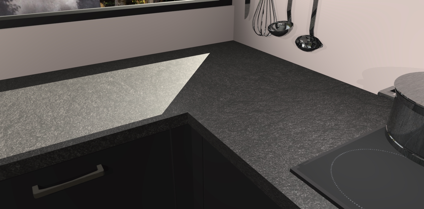 - Bij een hoekwerkblad zijn de hoeken in gevreesd en op maat gemaakt