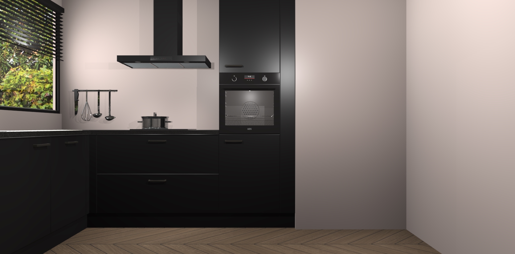 Met een modern, tijdloos design en ruime opslagruimte, zult u zich in no-time thuis voelen in uw nieuwe keuken. Uw leven wordt eenvoudiger met de soft-close deuren die voor het ultieme stille comfort zorgen - geen geluid dat u stoort terwijl u kookt. Ook is de keuken voorzien van 5 ingebouwde apparaten: een oven, inductie kookplaat, afzuigkap, vaatwasser en koelkast. Deze kunnen gemakkelijk na bestelling worden bijgewerkt naar AEG - waardoor uw luxe ervaring compleet is.
