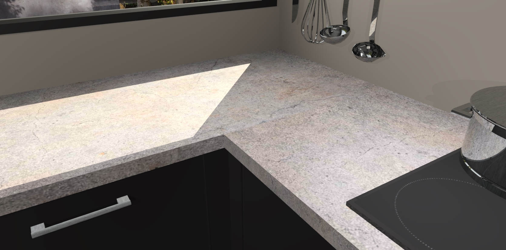 • Bij een hoekwerkblad zijn de hoeken in gevreesd en op maat gemaakt