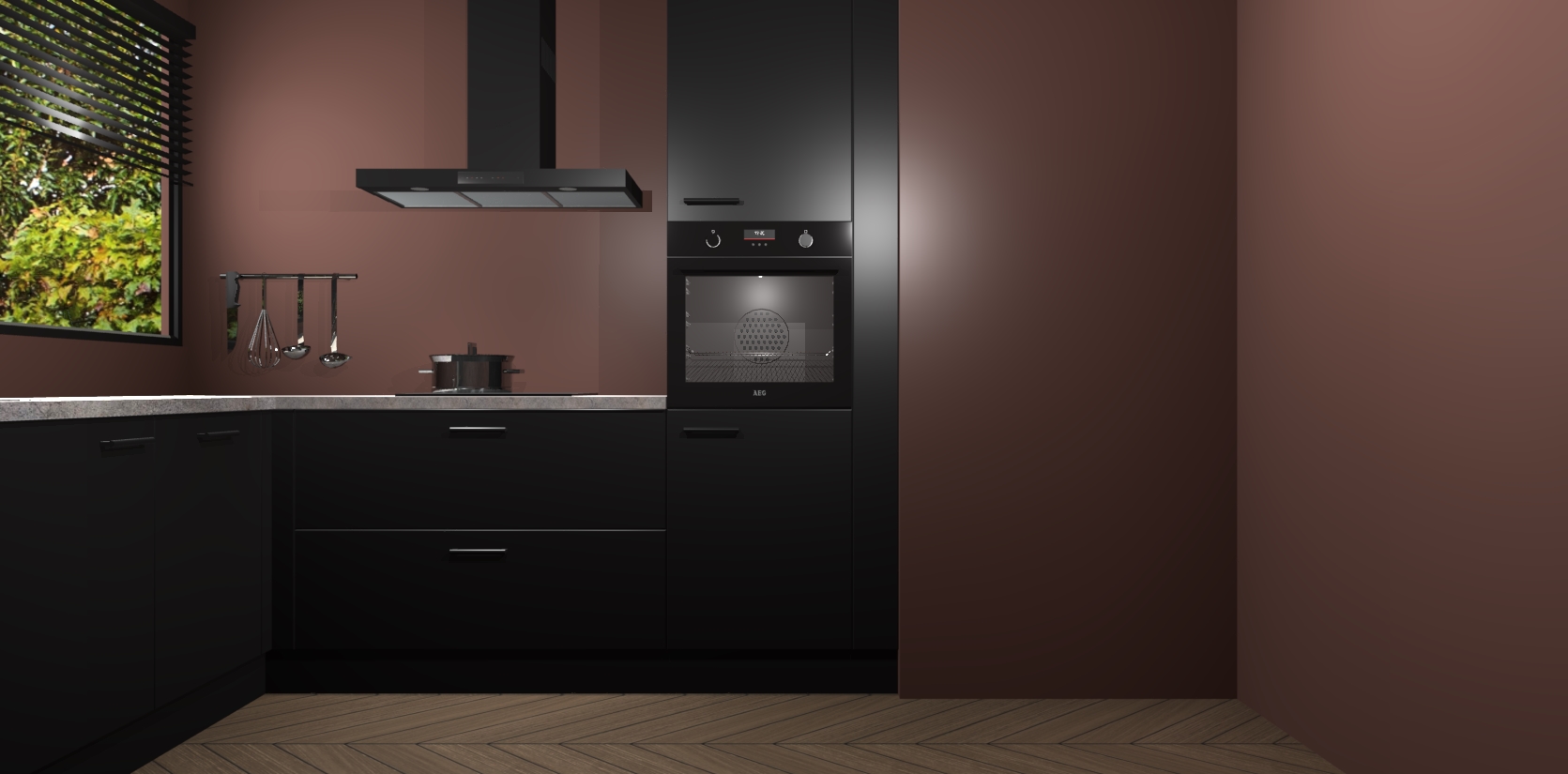 Met een modern, tijdloos design en ruime opslagruimte, zult u zich in no-time thuis voelen in uw nieuwe keuken. Uw leven wordt eenvoudiger met de soft-close deuren die voor het ultieme stille comfort zorgen - geen geluid dat u stoort terwijl u kookt. Ook is de keuken voorzien van 5 ingebouwde apparaten: een oven, inductie kookplaat, afzuigkap, vaatwasser en koelkast. Deze kunnen gemakkelijk na bestelling worden bijgewerkt naar AEG - waardoor uw luxe ervaring compleet is.