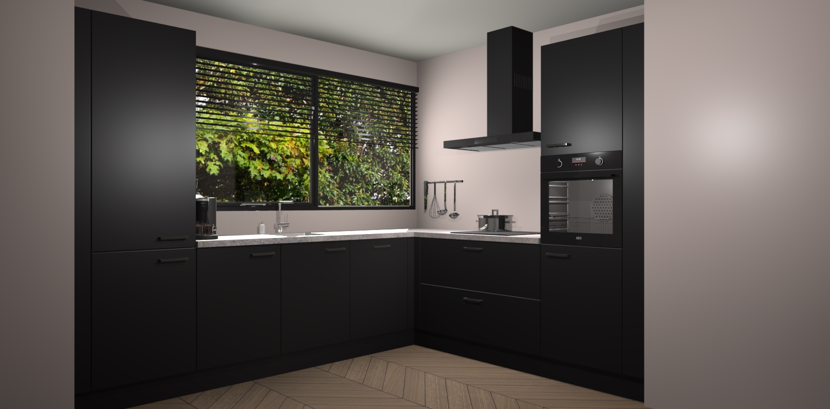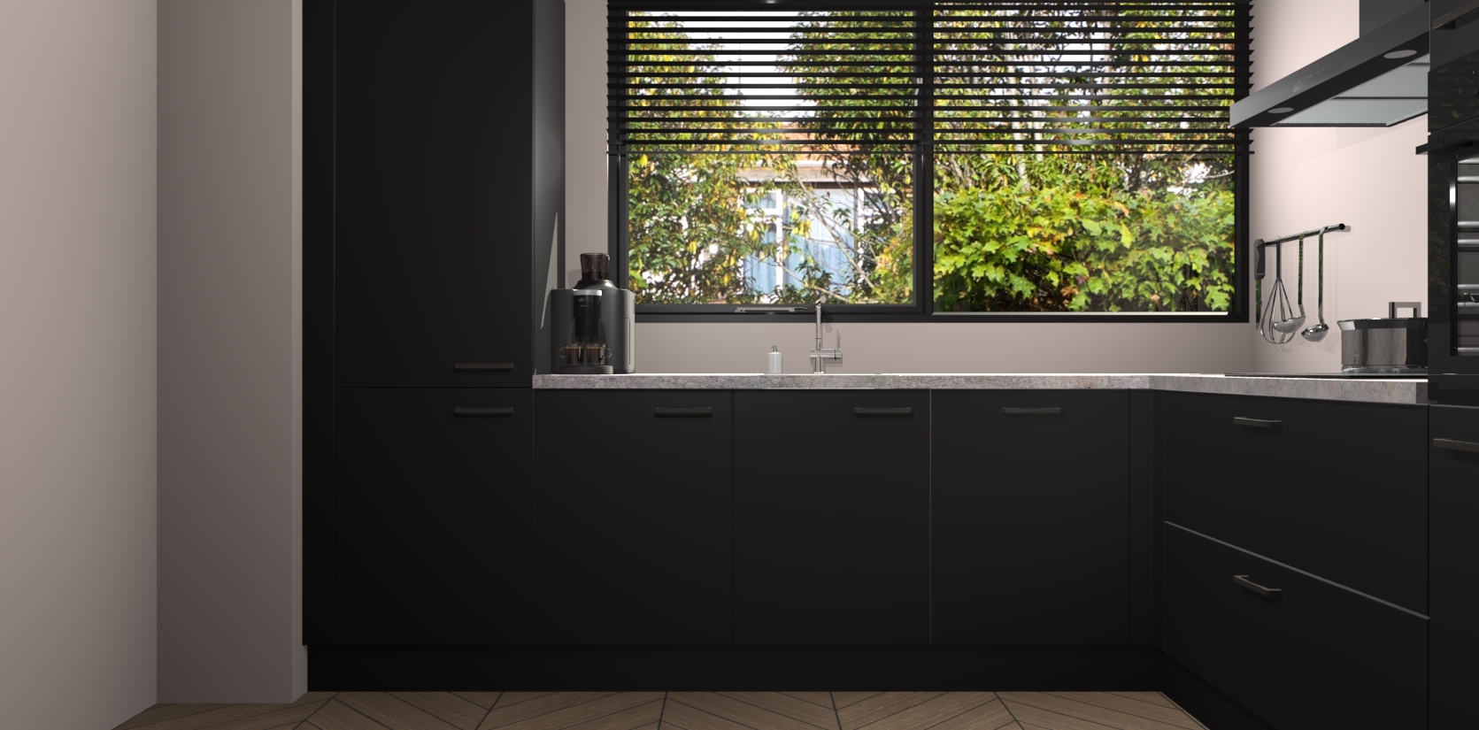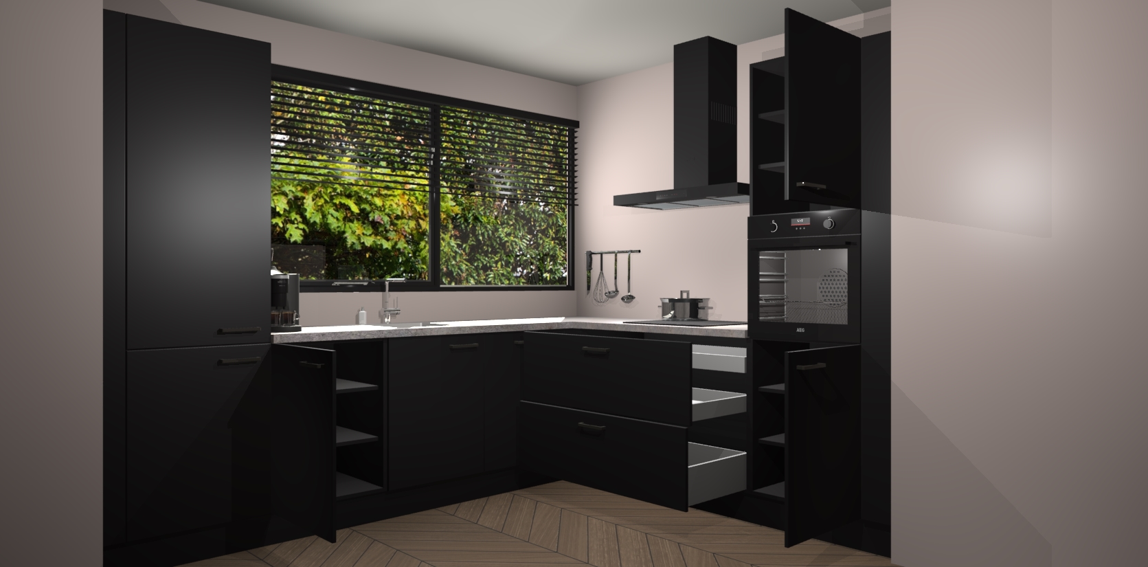 Wij presenteren de revolutie in keukens: de zwarte keuken Vogar. Met modern design, een tijdloos uiterlijk en kasten die al voor gemonteerd worden geleverd, laat deze stijlvolle keuken uw kookervaring op een hele nieuwe manier transformeren.