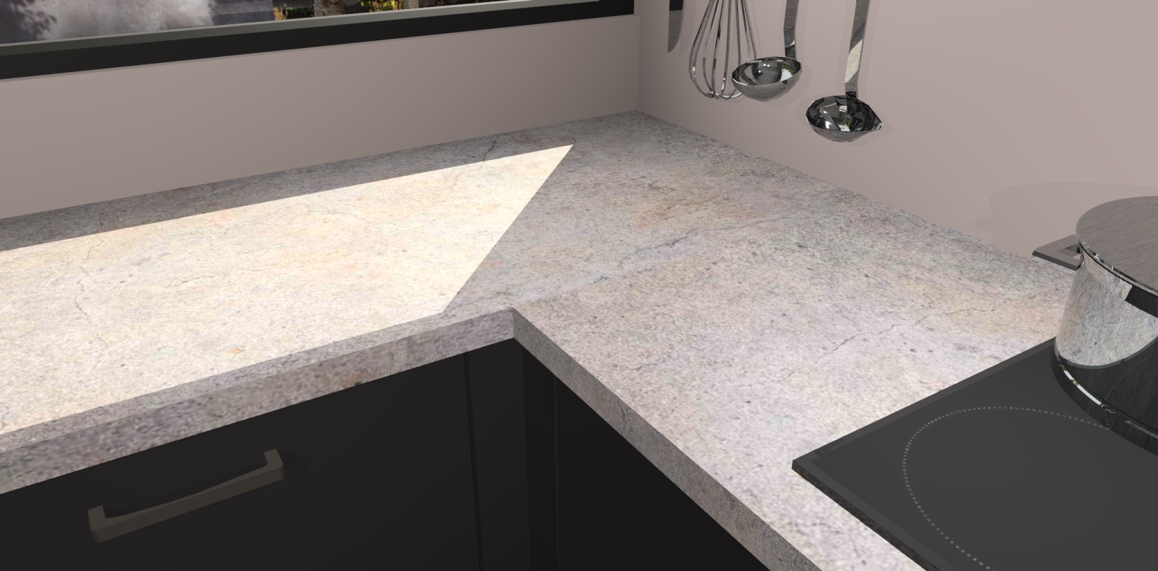 - Bij een hoekwerkblad zijn de hoeken in gevreesd en op maat gemaakt