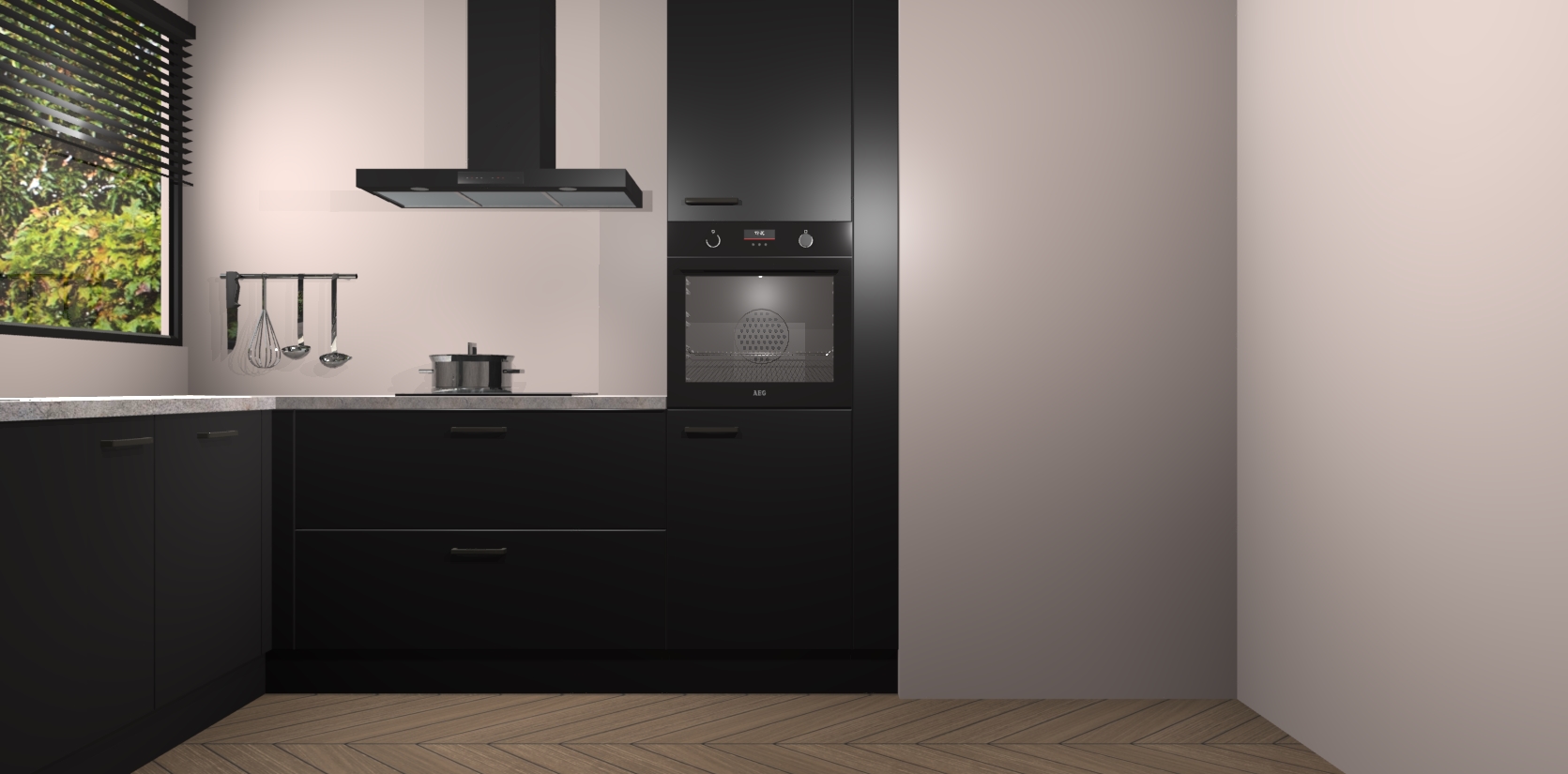 Met een modern, tijdloos design en ruime opslagruimte, zult u zich in no-time thuis voelen in uw nieuwe keuken. Uw leven wordt eenvoudiger met de soft-close deuren die voor het ultieme stille comfort zorgen - geen geluid dat u stoort terwijl u kookt. Ook is de keuken voorzien van 5 ingebouwde apparaten: een oven, inductie kookplaat, afzuigkap, vaatwasser en koelkast. Deze kunnen gemakkelijk na bestelling worden bijgewerkt naar AEG - waardoor uw luxe ervaring compleet is.