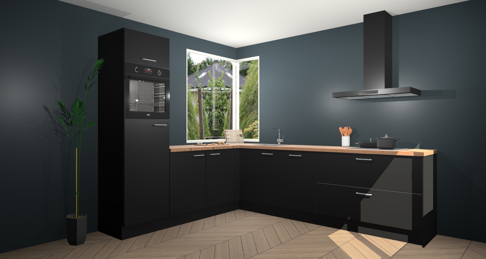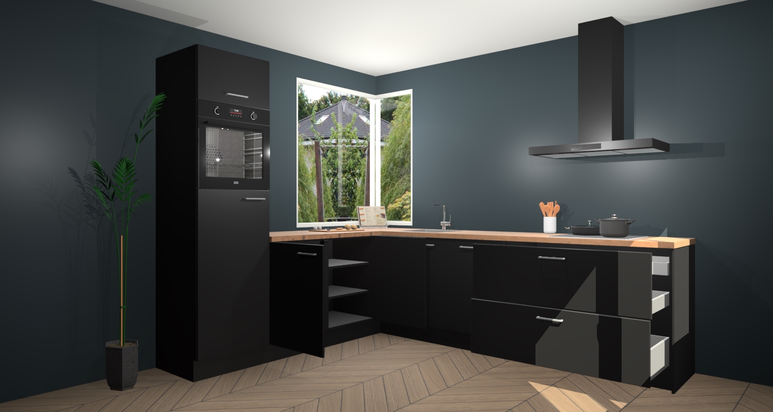Als u in de markt bent voor een keuken die warmte en schoonheid uitstraalt, kijk dan niet verder dan de zwarte keuken Zaria! De perfecte hoekkeuken met eigentijdse stijl en luxe details - dit is de keuken van uw dromen. Naast de prachtige zwarte buiten- en binnenkant wordt deze prachtige hoekkeuken geleverd met vijf ingebouwde apparaten die het leven makkelijker maken: een oven, inductiekookplaat, afzuigkap, vaatwasser en koelkast. Deze helpen u niet alleen om elke dag heerlijke maaltijden te bereiden, maar besparen u ook tijd tijdens het koken.