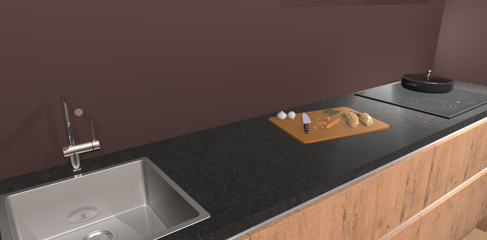 • Uitsparing van kookplaat, spoelbak en kraan dient u zelf te verzorgen.