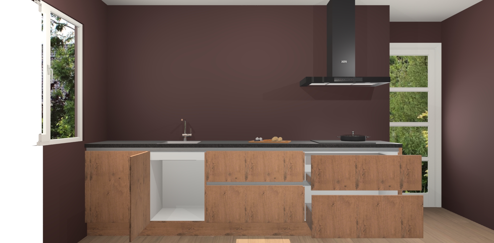 De softclose deuren openen en sluiten is ook heel eenvoudig - geniet van een moeiteloze keukenervaring, zelfs als er kinderen rondlopen. Voor extra gemak bij het plaatsen van uw bestelling bieden we ook een upgrade naar een kookplaat met geïntegreerde afzuiging.