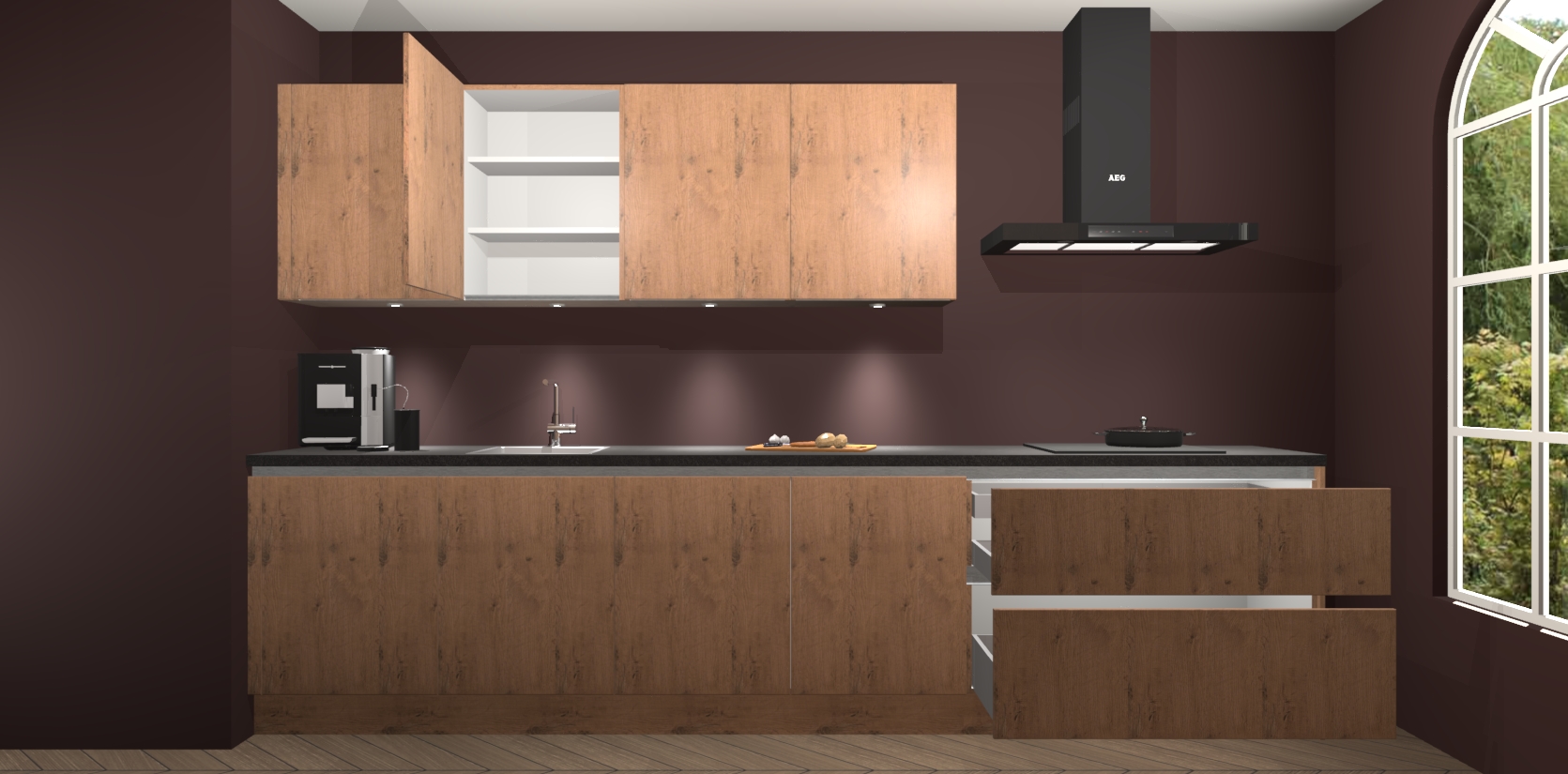 De softclose deuren openen en sluiten is ook heel eenvoudig - geniet van een moeiteloze keukenervaring, zelfs als er kinderen rondlopen. Voor extra gemak bij het plaatsen van uw bestelling bieden we ook een upgrade naar een kookplaat met geïntegreerde afzuiging.