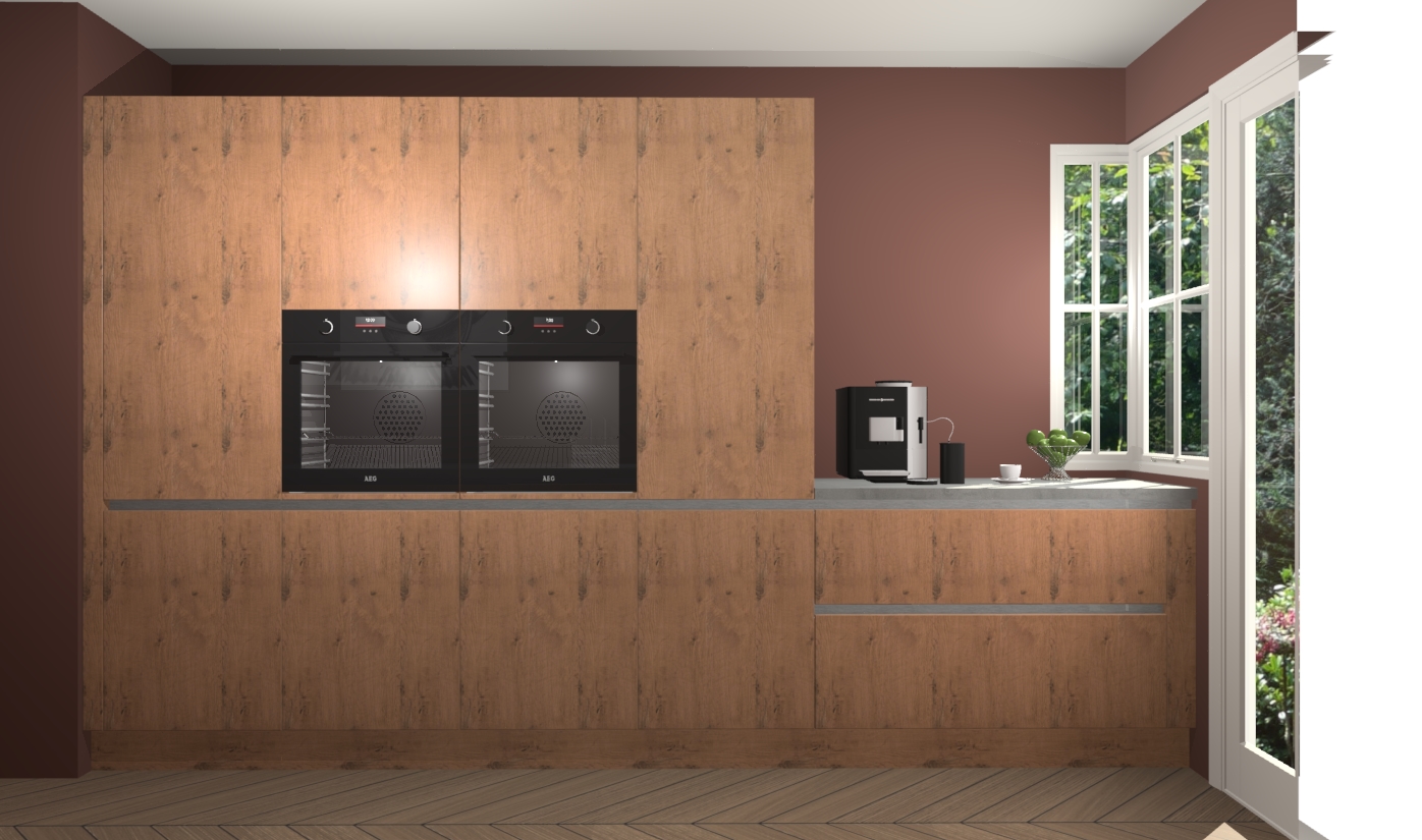 Een stijlvolle en praktische keuken als deze mag gezien worden. Dankzij de prachtige astoria eiken matte afwerking wordt de keuken gemakkelijk het middelpunt van uw huis - hij ziet er geweldig uit onder allerlei lichtomstandigheden, van dag tot nacht!