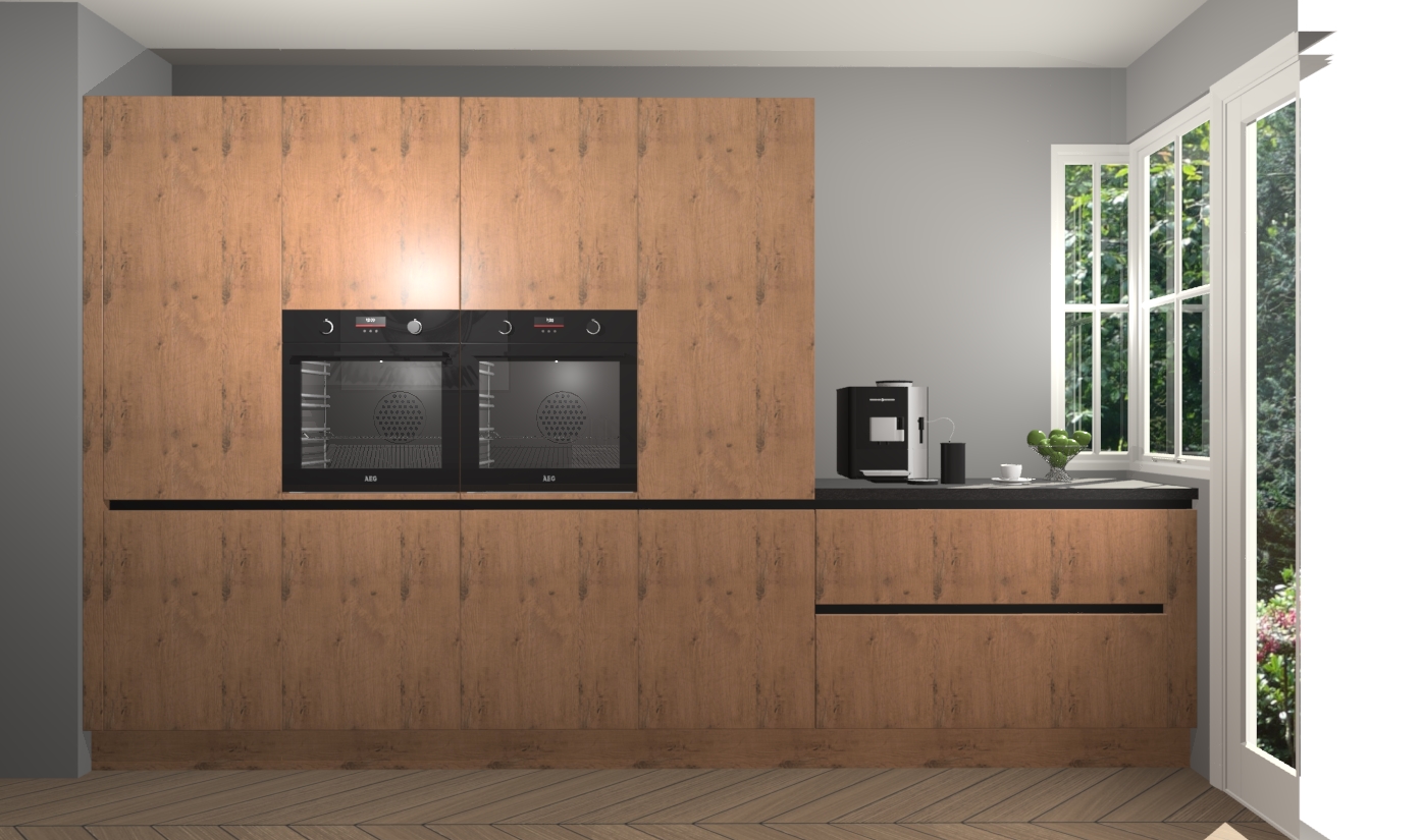 Een stijlvolle en praktische keuken als deze mag gezien worden. Dankzij de prachtige astoria eiken matte afwerking wordt de keuken gemakkelijk het middelpunt van uw huis - hij ziet er geweldig uit onder allerlei lichtomstandigheden, van dag tot nacht!