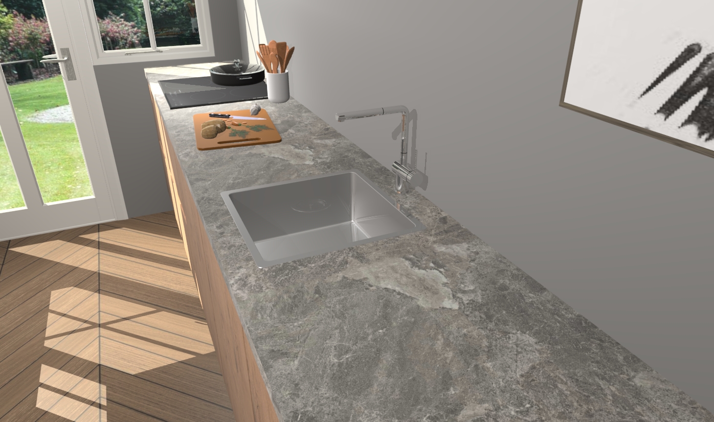 • Bij een hoekwerkblad zijn de hoeken in gevreesd en op maat gemaakt