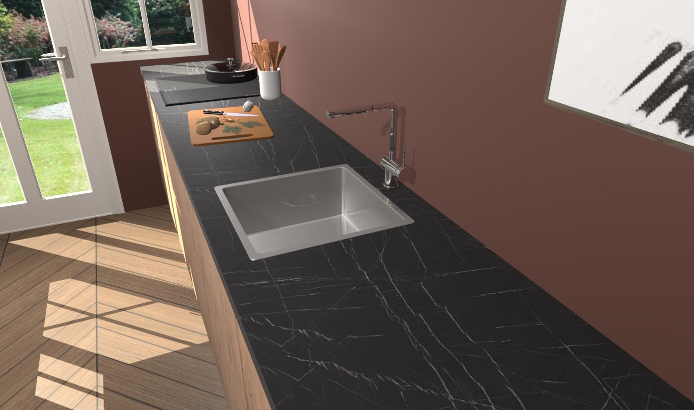 - Bij een hoekwerkblad zijn de hoeken in gevreesd en op maat gemaakt