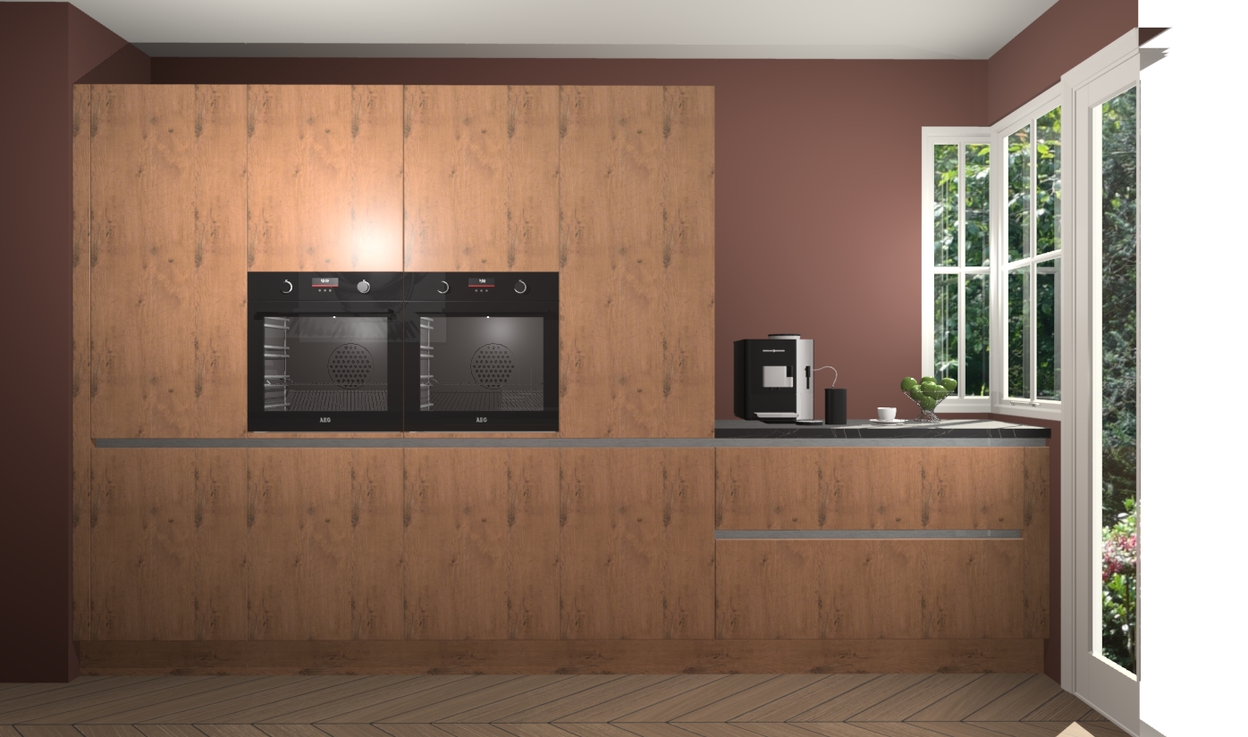 Een stijlvolle en praktische keuken als deze mag gezien worden. Dankzij de prachtige astoria eiken matte afwerking wordt de keuken gemakkelijk het middelpunt van uw huis - hij ziet er geweldig uit onder allerlei lichtomstandigheden, van dag tot nacht!