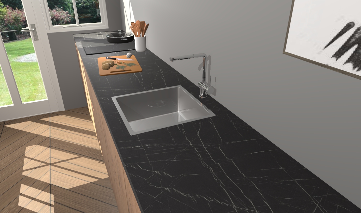 - Bij een hoekwerkblad zijn de hoeken in gevreesd en op maat gemaakt