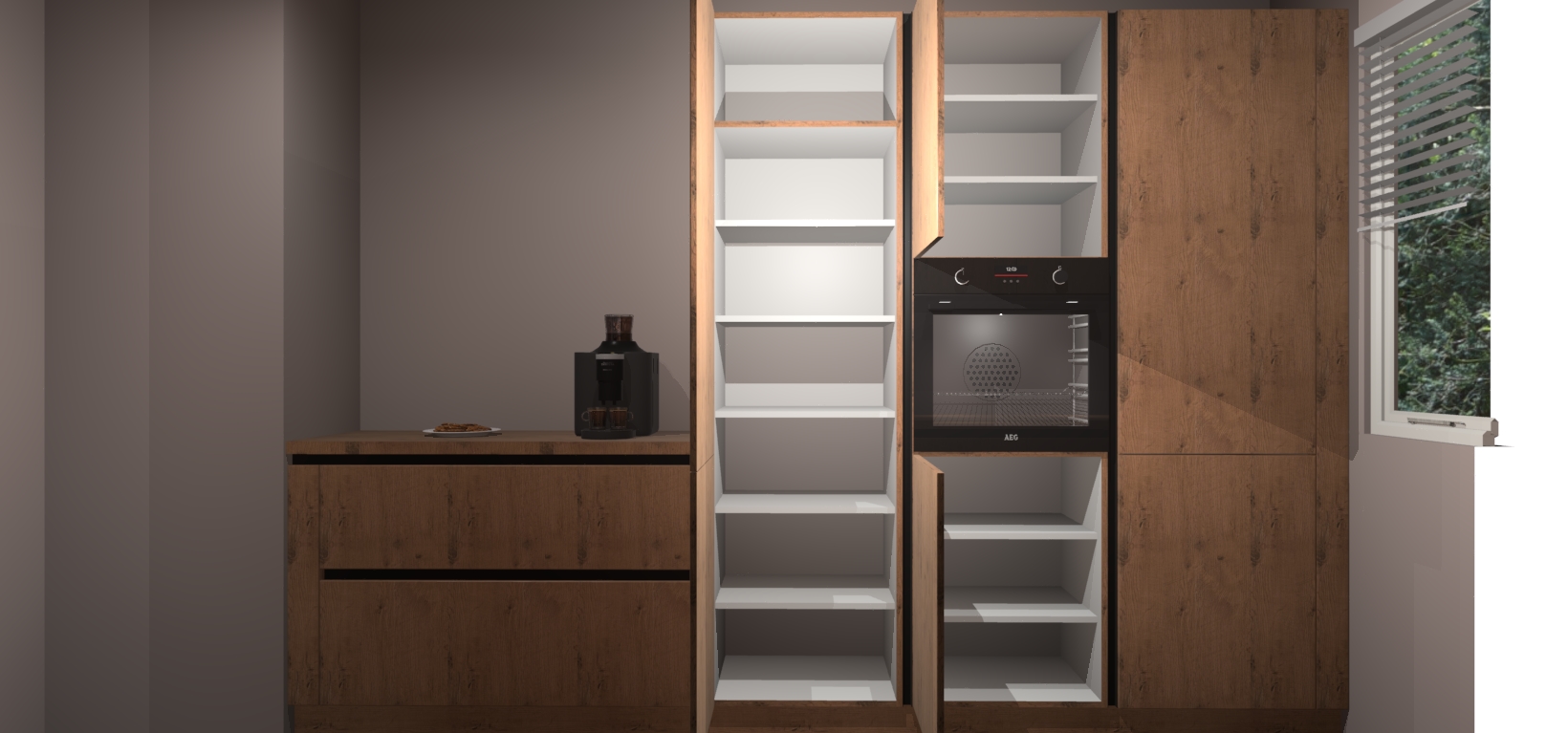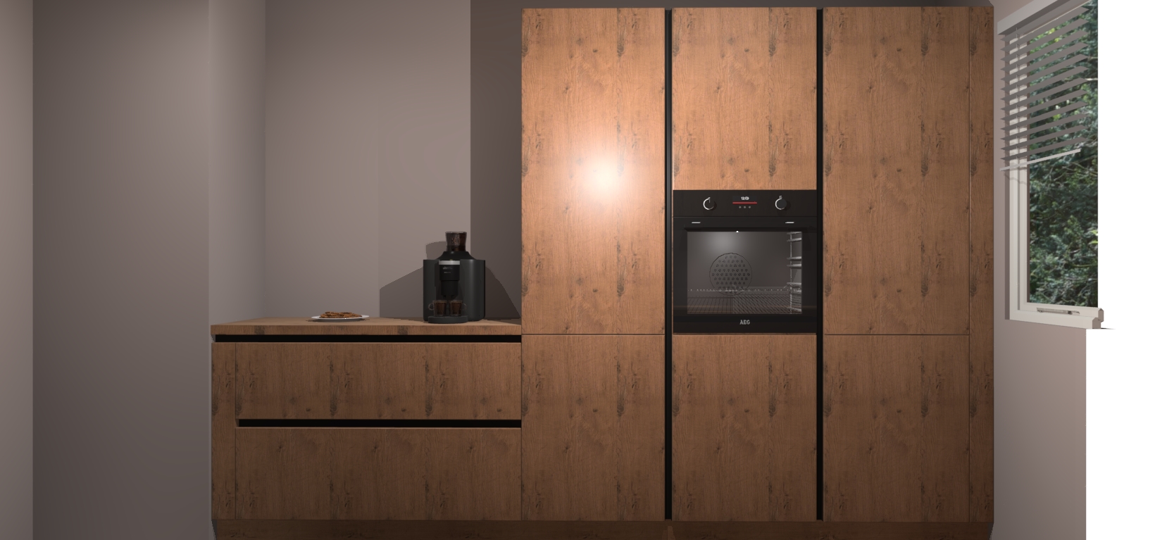 Een stijlvolle en praktische keuken als deze mag gezien worden. Dankzij de prachtige Astoria Eiken matte afwerking wordt de keuken gemakkelijk het middelpunt van uw huis - hij ziet er geweldig uit onder allerlei lichtomstandigheden, van dag tot nacht!