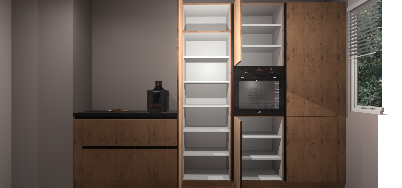 Een stijlvolle en praktische keuken als deze mag gezien worden. Dankzij de prachtige Astoria Eiken matte afwerking wordt de keuken gemakkelijk het middelpunt van uw huis - hij ziet er geweldig uit onder allerlei lichtomstandigheden, van dag tot nacht!