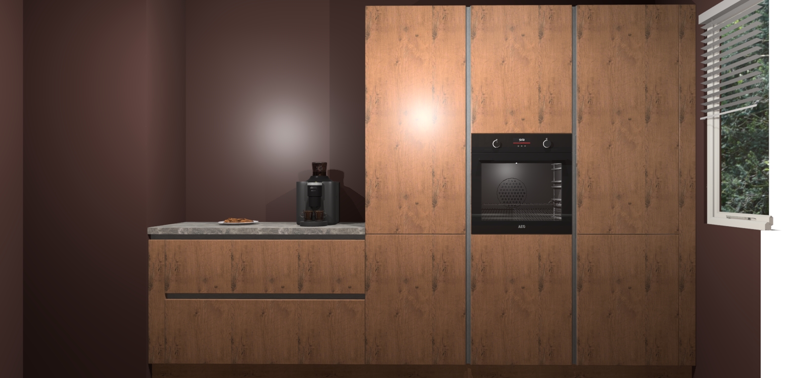 Een stijlvolle en praktische keuken als deze mag gezien worden. Dankzij de prachtige Astoria Eiken matte afwerking wordt de keuken gemakkelijk het middelpunt van uw huis - hij ziet er geweldig uit onder allerlei lichtomstandigheden, van dag tot nacht!