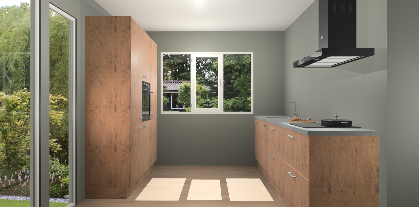 De softclose deuren openen en sluiten is ook heel eenvoudig - geniet van een moeiteloze keukenervaring, zelfs als er kinderen rondlopen. Voor extra gemak bij het plaatsen van uw bestelling bieden we ook een upgrade naar een kookplaat met geïntegreerde afzuiging.