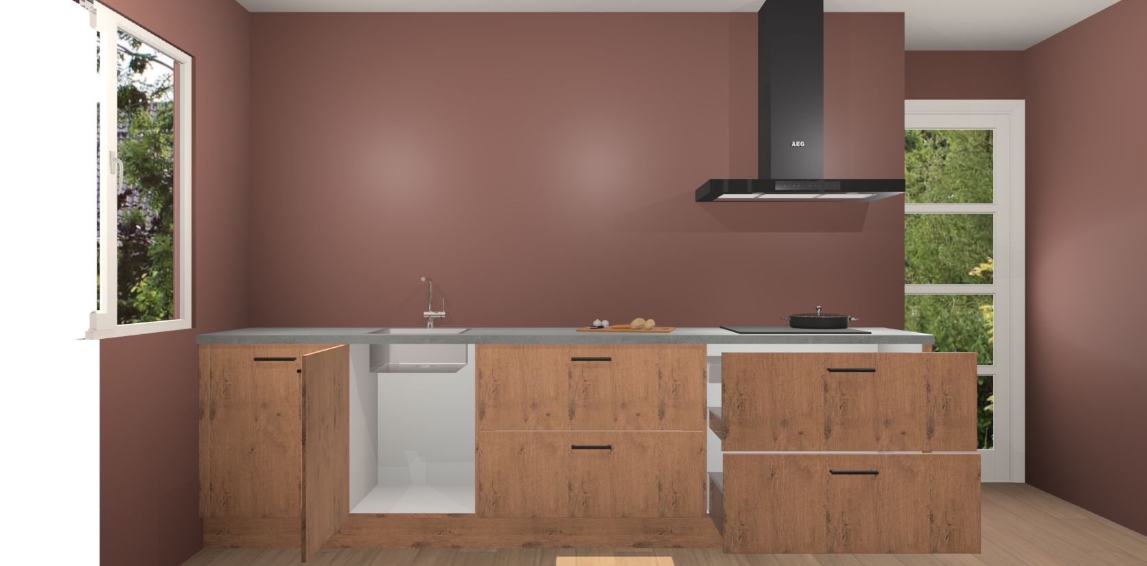 De softclose deuren openen en sluiten is ook heel eenvoudig - geniet van een moeiteloze keukenervaring, zelfs als er kinderen rondlopen. Voor extra gemak bij het plaatsen van uw bestelling bieden we ook een upgrade naar een kookplaat met geïntegreerde afzuiging.