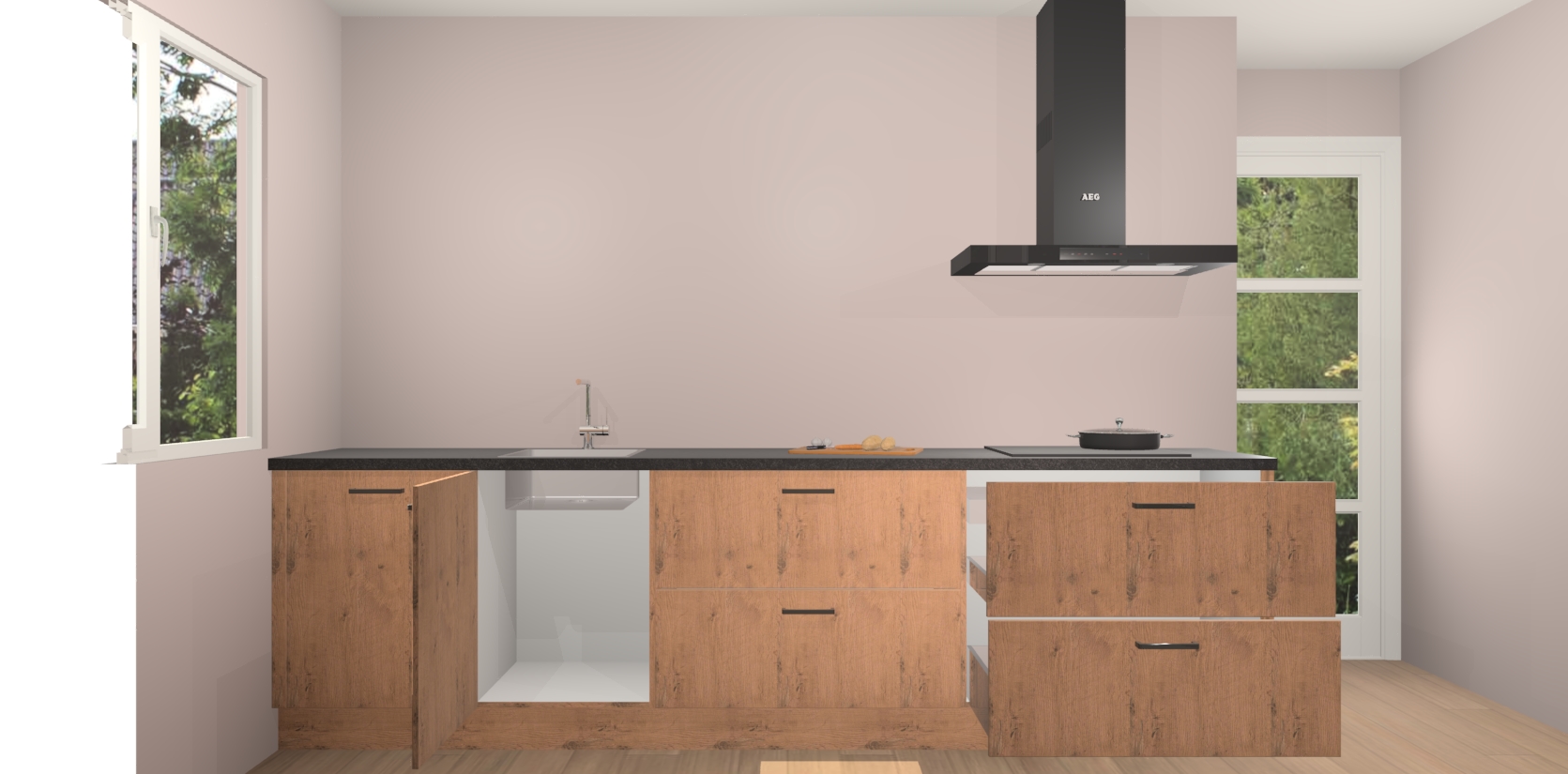 De softclose deuren openen en sluiten is ook heel eenvoudig - geniet van een moeiteloze keukenervaring, zelfs als er kinderen rondlopen. Voor extra gemak bij het plaatsen van uw bestelling bieden we ook een upgrade naar een kookplaat met geïntegreerde afzuiging.