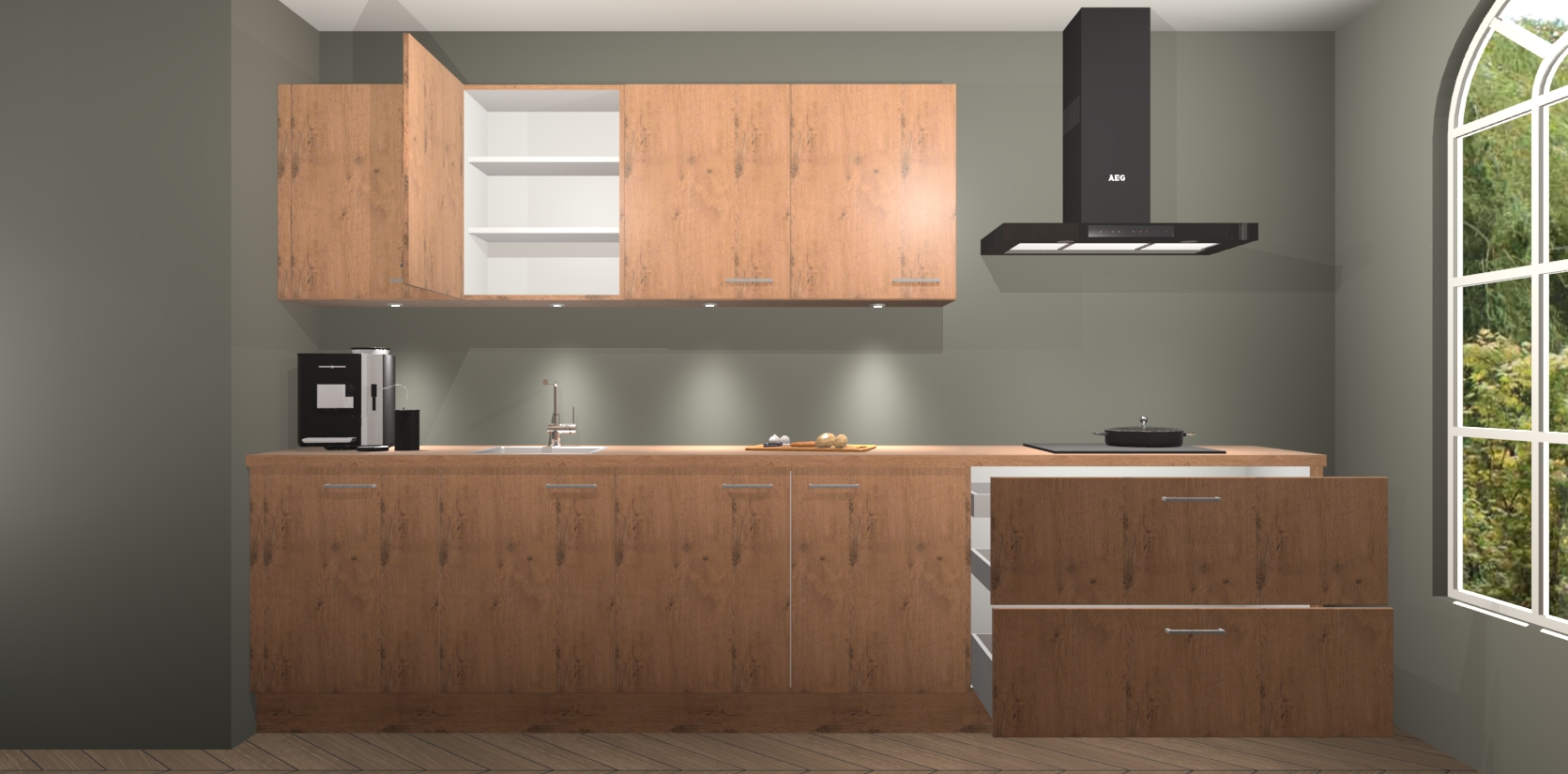 De softclose deuren openen en sluiten is ook heel eenvoudig - geniet van een moeiteloze keukenervaring, zelfs als er kinderen rondlopen. Voor extra gemak bij het plaatsen van uw bestelling bieden we ook een upgrade naar een kookplaat met geïntegreerde afzuiging.