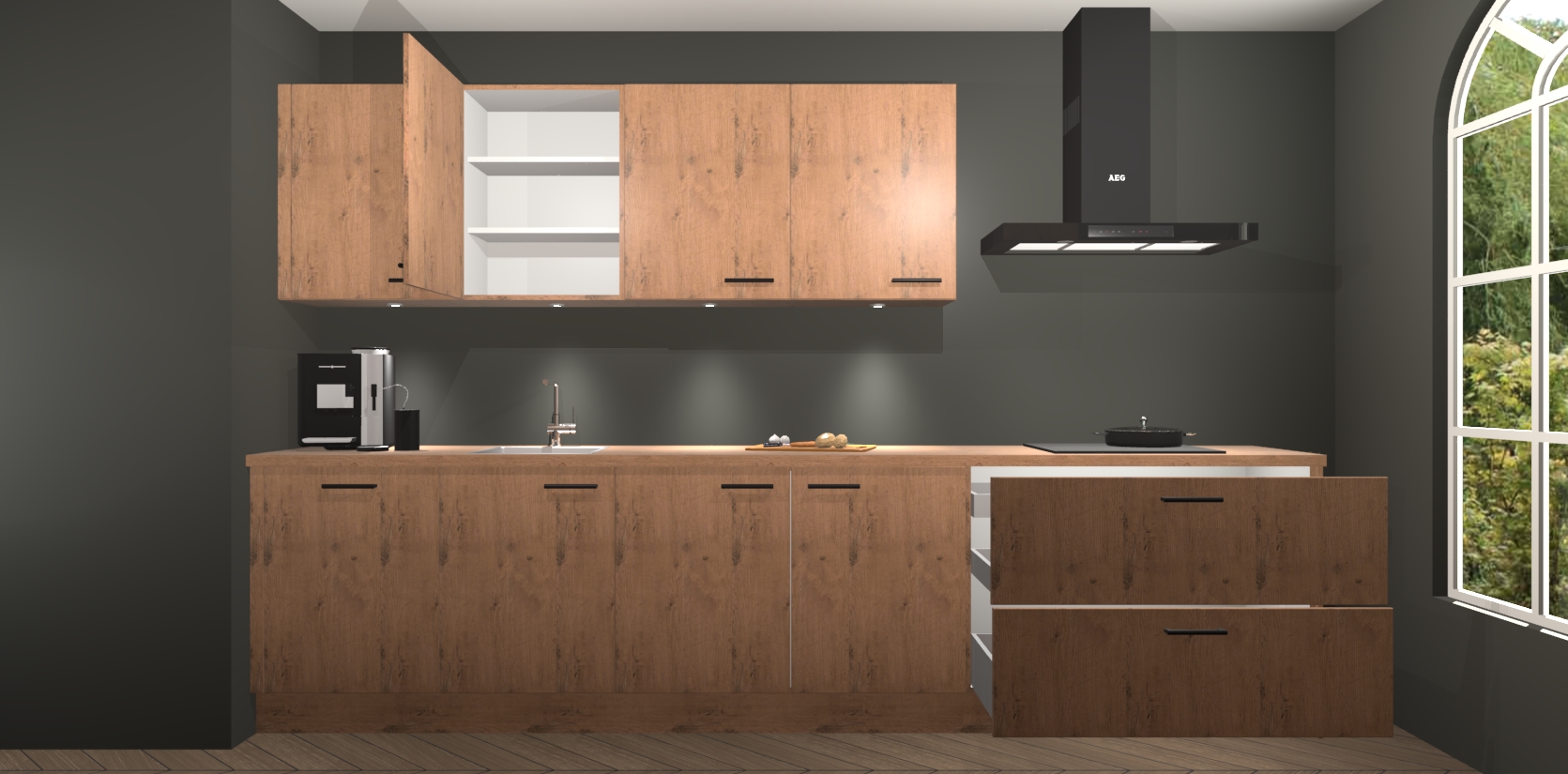 De softclose deuren openen en sluiten is ook heel eenvoudig - geniet van een moeiteloze keukenervaring, zelfs als er kinderen rondlopen. Voor extra gemak bij het plaatsen van uw bestelling bieden we ook een upgrade naar een kookplaat met geïntegreerde afzuiging.