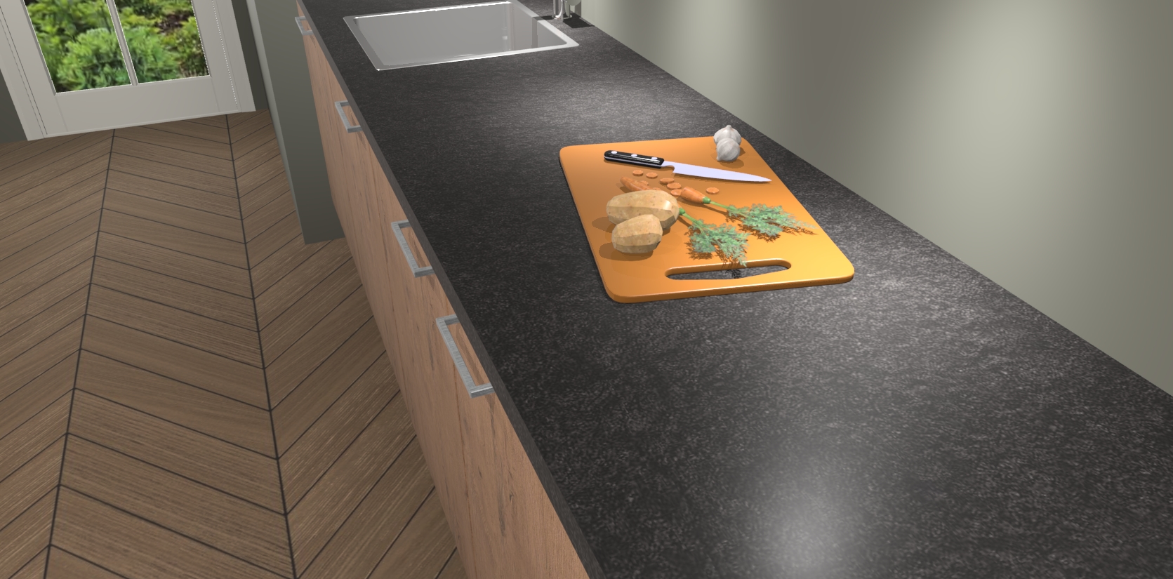 - Bij een hoekwerkblad zijn de hoeken in gevreesd en op maat gemaakt
