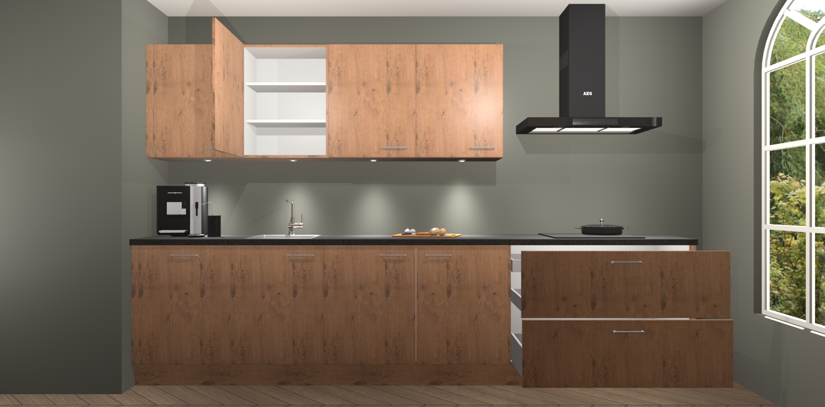 De softclose deuren openen en sluiten is ook heel eenvoudig - geniet van een moeiteloze keukenervaring, zelfs als er kinderen rondlopen. Voor extra gemak bij het plaatsen van uw bestelling bieden we ook een upgrade naar een kookplaat met geïntegreerde afzuiging.