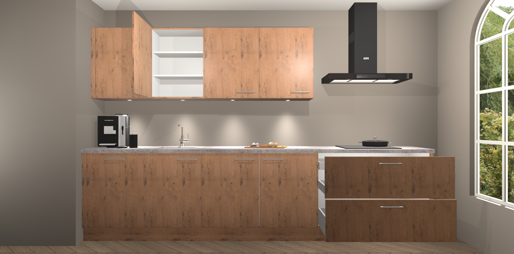 De softclose deuren openen en sluiten is ook heel eenvoudig - geniet van een moeiteloze keukenervaring, zelfs als er kinderen rondlopen. Voor extra gemak bij het plaatsen van uw bestelling bieden we ook een upgrade naar een kookplaat met geïntegreerde afzuiging.
