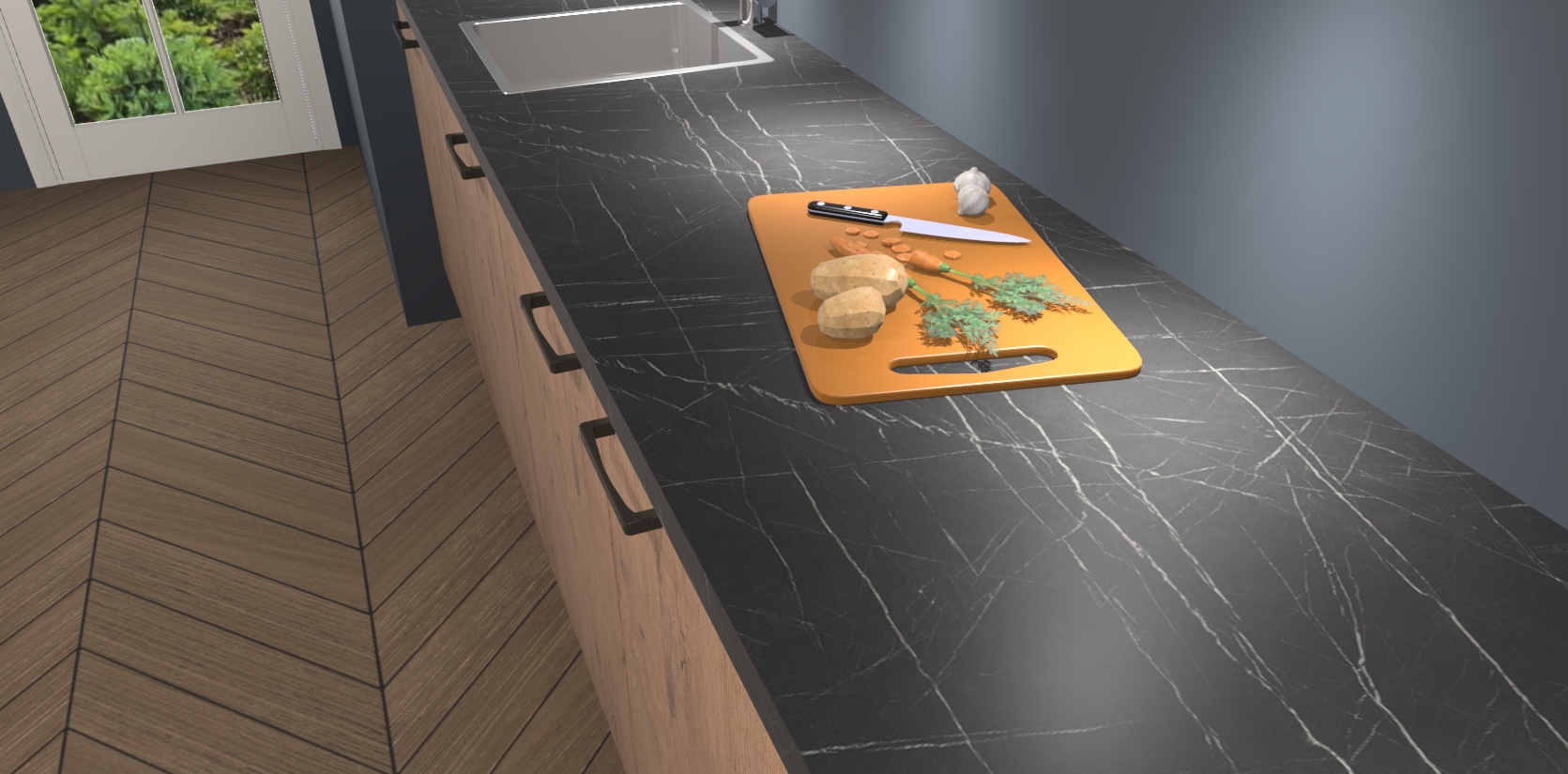 • Bij een hoekwerkblad zijn de hoeken in gevreesd en op maat gemaakt