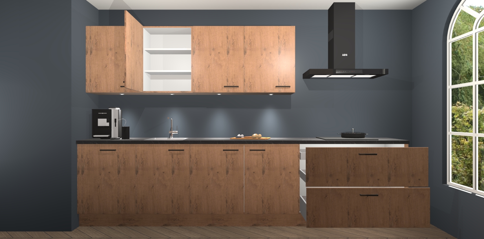 De softclose deuren openen en sluiten is ook heel eenvoudig - geniet van een moeiteloze keukenervaring, zelfs als er kinderen rondlopen. Voor extra gemak bij het plaatsen van uw bestelling bieden we ook een upgrade naar een kookplaat met geïntegreerde afzuiging.