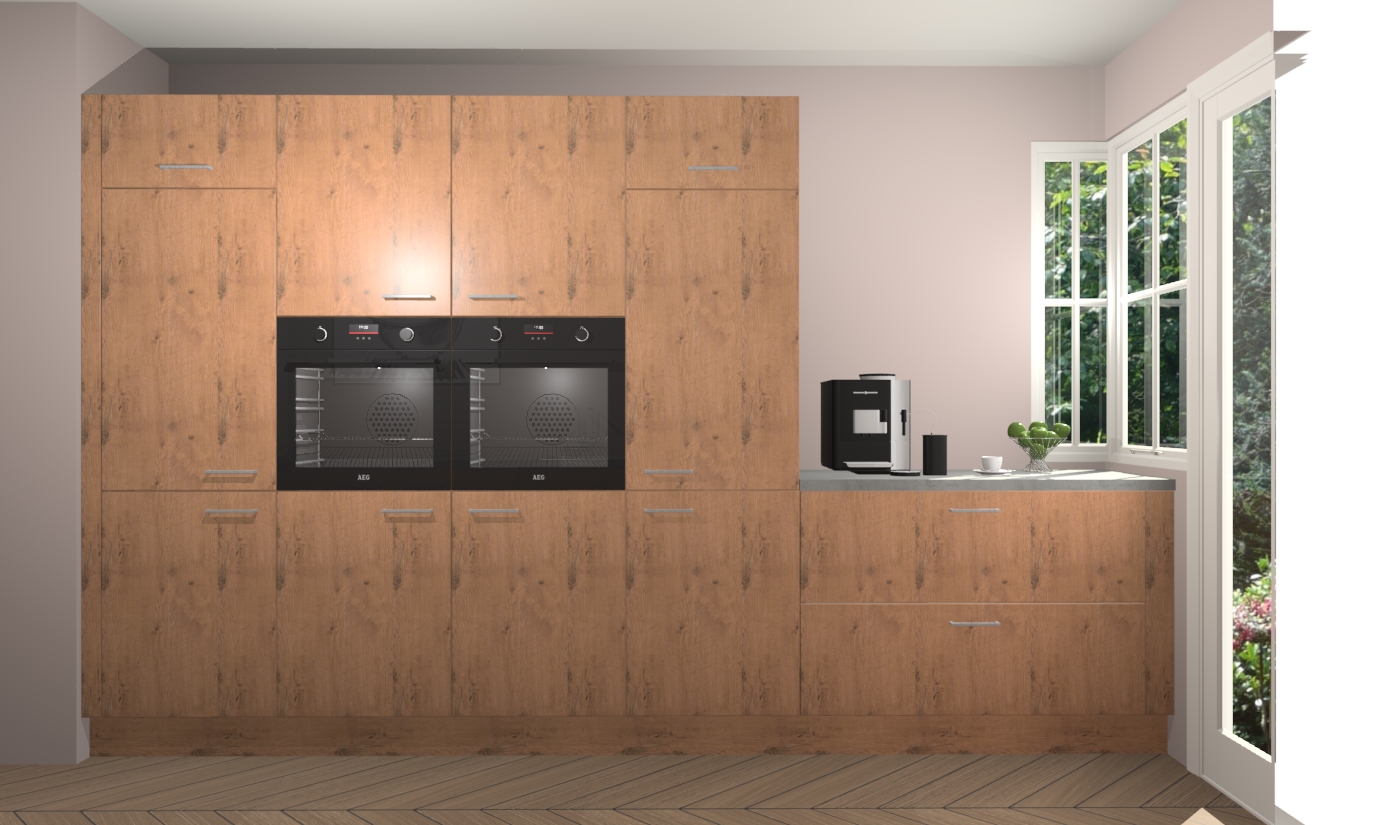 Een stijlvolle en praktische keuken als deze mag gezien worden. Dankzij de prachtige astoria eiken matte afwerking wordt de keuken gemakkelijk het middelpunt van uw huis - hij ziet er geweldig uit onder allerlei lichtomstandigheden, van dag tot nacht!