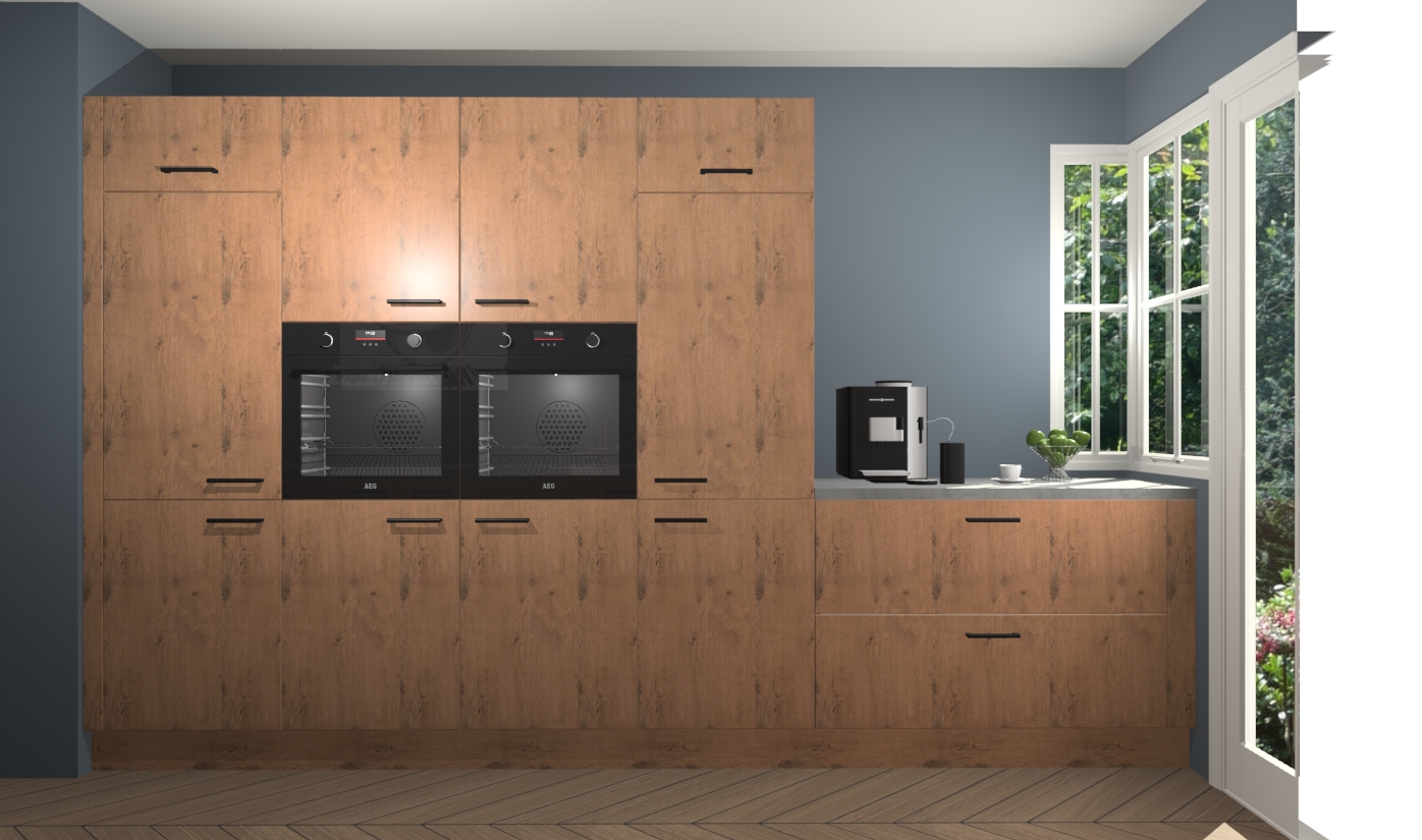 Een stijlvolle en praktische keuken als deze mag gezien worden. Dankzij de prachtige astoria eiken matte afwerking wordt de keuken gemakkelijk het middelpunt van uw huis - hij ziet er geweldig uit onder allerlei lichtomstandigheden, van dag tot nacht!