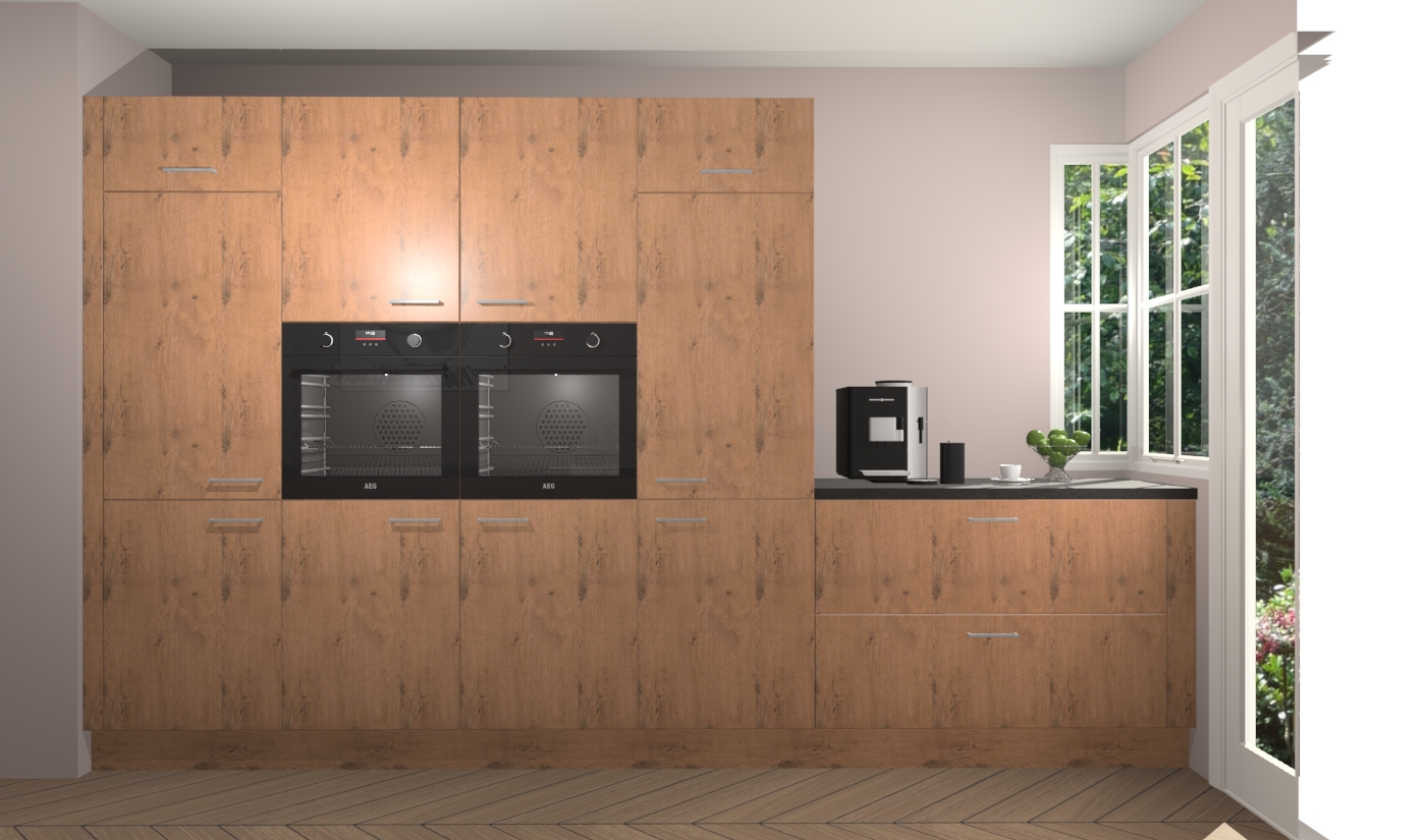 Een stijlvolle en praktische keuken als deze mag gezien worden. Dankzij de prachtige astoria eiken matte afwerking wordt de keuken gemakkelijk het middelpunt van uw huis - hij ziet er geweldig uit onder allerlei lichtomstandigheden, van dag tot nacht!