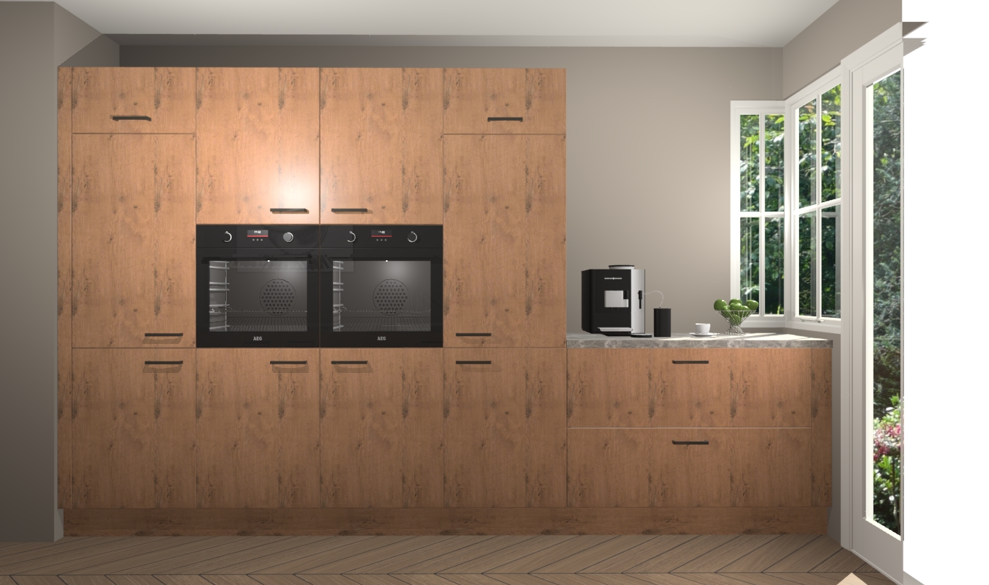 Een stijlvolle en praktische keuken als deze mag gezien worden. Dankzij de prachtige astoria eiken matte afwerking wordt de keuken gemakkelijk het middelpunt van uw huis - hij ziet er geweldig uit onder allerlei lichtomstandigheden, van dag tot nacht!