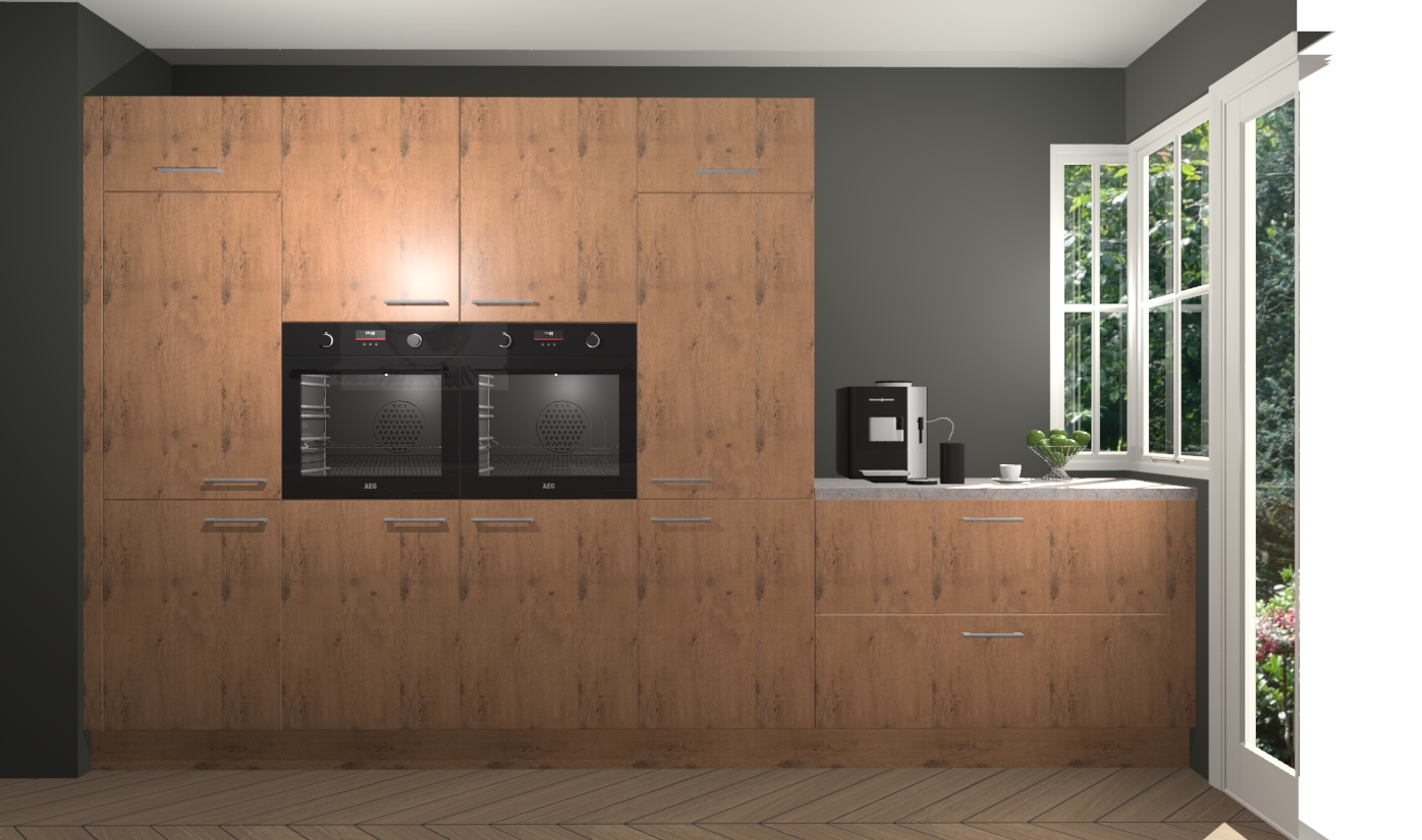 Een stijlvolle en praktische keuken als deze mag gezien worden. Dankzij de prachtige astoria eiken matte afwerking wordt de keuken gemakkelijk het middelpunt van uw huis - hij ziet er geweldig uit onder allerlei lichtomstandigheden, van dag tot nacht!