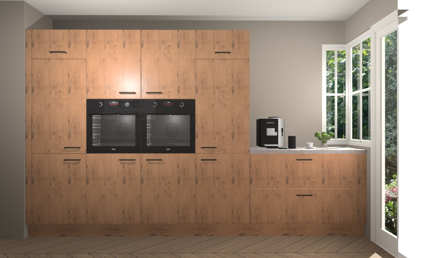 Een stijlvolle en praktische keuken als deze mag gezien worden. Dankzij de prachtige astoria eiken matte afwerking wordt de keuken gemakkelijk het middelpunt van uw huis - hij ziet er geweldig uit onder allerlei lichtomstandigheden, van dag tot nacht!