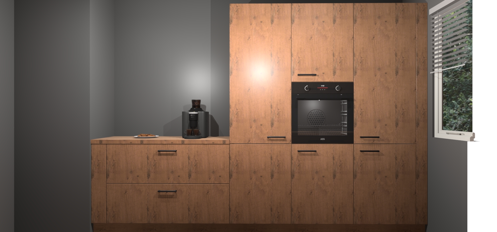 Een stijlvolle en praktische keuken als deze mag gezien worden. Dankzij de prachtige Astoria Eiken matte afwerking wordt de keuken gemakkelijk het middelpunt van uw huis - hij ziet er geweldig uit onder allerlei lichtomstandigheden, van dag tot nacht!