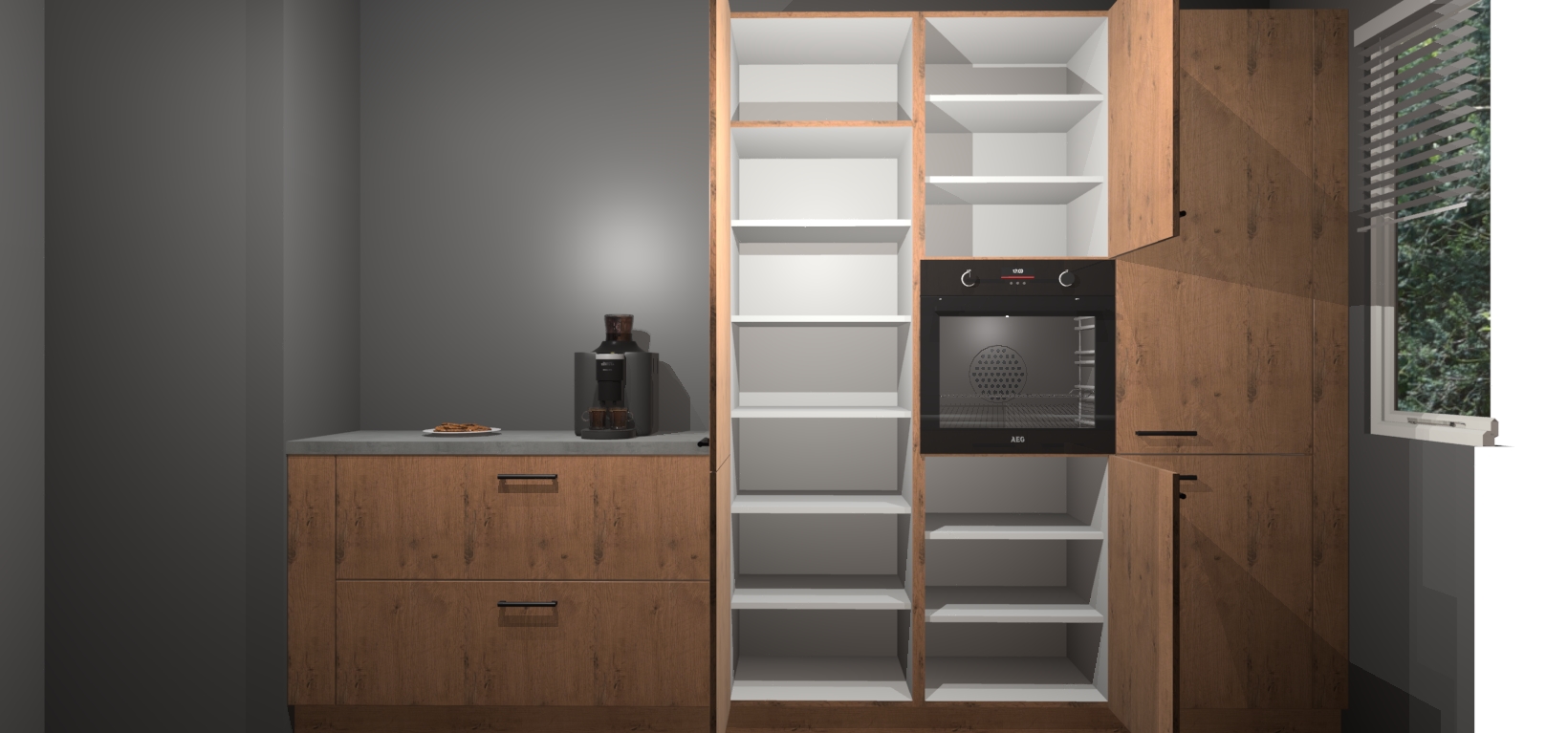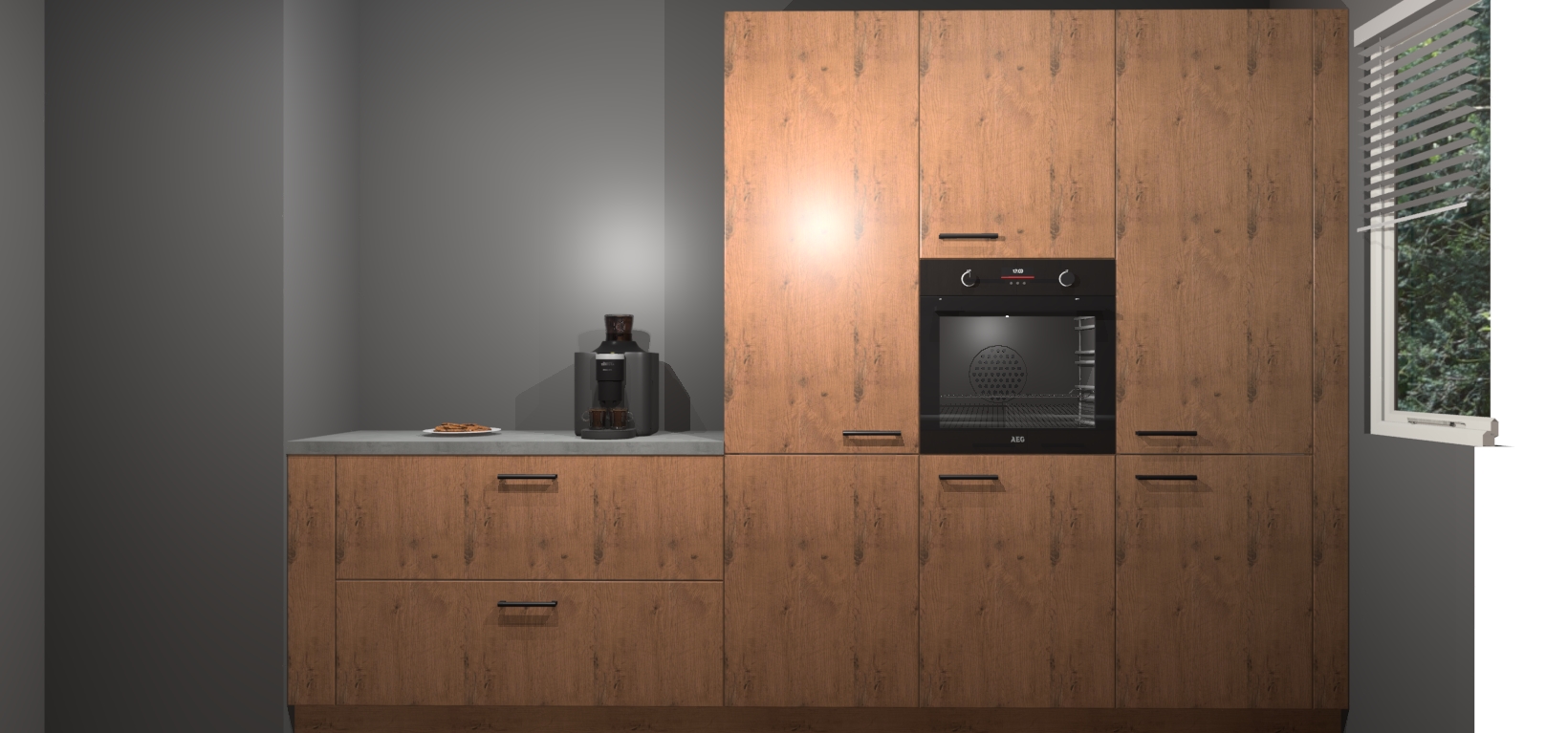 Een stijlvolle en praktische keuken als deze mag gezien worden. Dankzij de prachtige Astoria Eiken matte afwerking wordt de keuken gemakkelijk het middelpunt van uw huis - hij ziet er geweldig uit onder allerlei lichtomstandigheden, van dag tot nacht!
